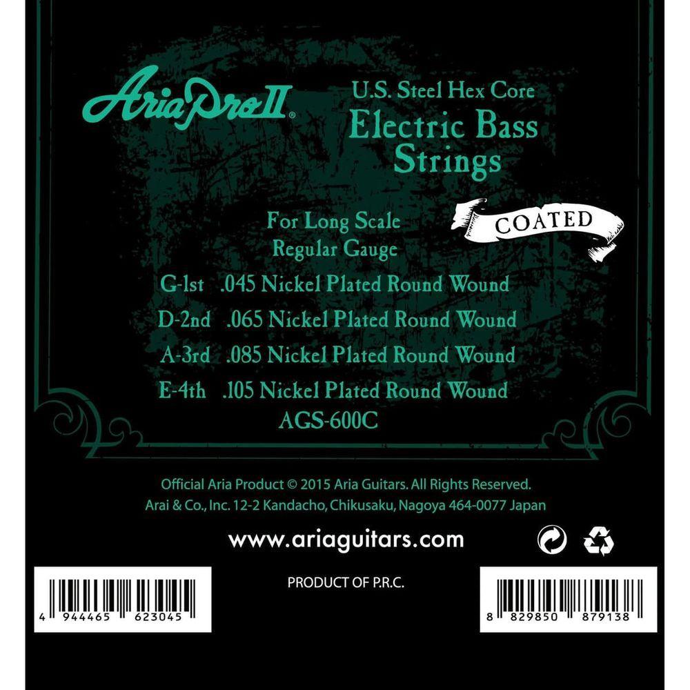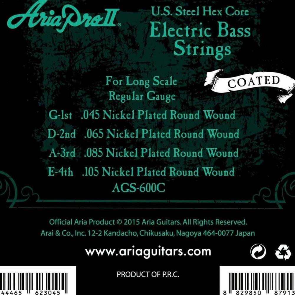 Encordoamento Para Baixo Coated .045 Ags600c Aria Pro IiModelo: AGS600CO Encordoamento Para Baixo 4 Cordas Coated .045 AGS600C da Aria Pro II ? um modelo que conta com C.R.T. (Tratamento Resistente ? Corros?o), um processo que protege as superf?cies met?licas do contato com oxig?nio e umidade. Ao combinar esse processo com os melhores materiais, trefila??o precisa e revestimento, cada conjunto da s?rie AGS C mant?m o tom familiar das cordas sem revestimento, ao mesmo tempo que prolonga sua durabilidade.As cordas AGS-600C oferecem alto desempenho duradouro, fabricadas a partir do melhor fio de a?o niquelado enrolado em um n?cleo de a?o hexagonal americano. Essa constru??o melhora a resposta magn?tica, resultando em um volume brilhante, notas sustentadas e uma for?a impressionante.Aplica??o: BaixoTens?o: .045 - .105 - Longa Escala Coated
