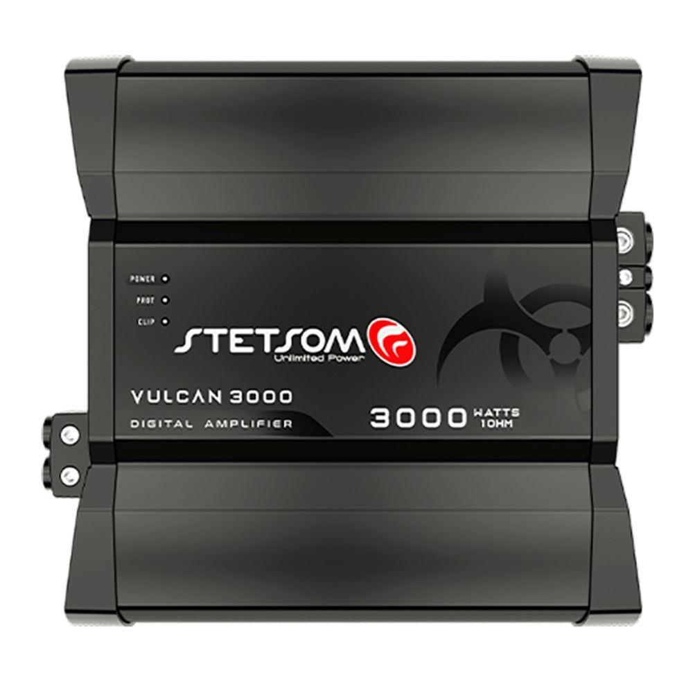 Modulo De Potencia Stetsom Vulcan 3000 1c 1rEspecificacao TecnicaVULCAN 3000 1 OHM*Imagens meramente ilustrativas.DescricaoNumero de Canais01Potencia RMS em 1 Ohm12,6V 3100WPotencia RMS em 2 Ohms12,6V 2000WPotencia RMS em 1 Ohm14,4V 3500WPotencia RMS em 2 Ohms14,4V 2100WResposta em Frequencia10Hz ~ 22KHzCrossover Low Pass90Hz ~ 22KHzCrossover High Pass10Hz ~ 90HzRelacao Sinal Ruido>90dBDistorcao HarmonicaTHD+N a =1%Sensibilidade de Entrada200mVImpedancia de Entrada18K OhmsImpedancia Minima de Saida1 OHMConsumo com Sinal Musical160AConsumo com Sinal Bass320ADimensoes (A x L x C) mm78 x 231.5 x 239.5 mmPeso Kg2.8 Kg