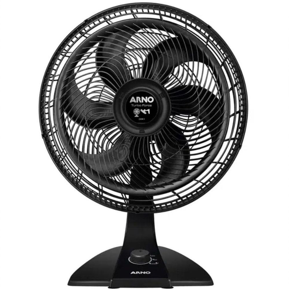 Ventilador Arno 40cm Turbo Force 2 Em 1 Vf42 - Vf42 Preto 110 VoltsVentilador Arno Turbo Force 2 em 1DescriçãoNa mesa ou na parede, deixe os ambientes da sua casa muito mais agradáveis, refrescantes e silenciosos com o novo Ventilador Arno Turbo Force 2 em 1, super forte e silencioso. Esteproduto é perfeito para qualquer tipo de ambiente pois possui 6 pás para um potente fluxo de ar, inclinação acionada por um botão lateral, grades aerodinâmicas e seguras para crianças, e uma oscilação horizontal de 80 graus para uma ótima distribuição de ar. Além disso, o Ventilador Arno Turbo Force 2 em 1, apresenta tecnologia Power Zone, uma área concentrada que garante o máximo de vento direcionado, oferecendo performance superior e controle para que você não se preocupe com mais nada e pare de sofrer com o calor.
