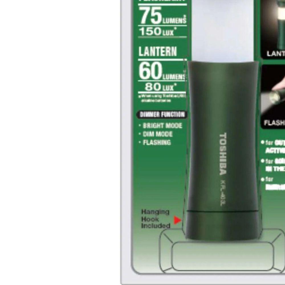 Lanterna Toshiba 2way Kfl-403l VermelhaModelo: 2WAY KFL-403LA Lanterna Toshiba 2WAY KFL-403L é versátil e poderosa. Com seu design bidirecional, oferece uma luz brilhante de 75 Lumens / 150LUX e uma segunda opção de 60 Lumens / 80LUX. Leve e compacta, pesando apenas 88g e com dimensões de f39 x 101~141mm, é fácil de transportar e armazenar. Equipada com função Dimmer Blight/DIM/Piscando para atender às suas necessidades de iluminação. Além disso, possui um prático gancho para pendurar, proporcionando conveniência onde quer que você vá.Cor: VermelhaAlimentação: AAA x 3 unidades *não inclusoInformação adicional:? Uso bidirecional, 1 luz flash, 2 lanternas? Lanterna 75 Lumens / 150LUX? Lanterna 60 Lumens / 80LUX? 88g/f39 x 101~141mm? Função Dimmer Blight/DIM/Piscando? Com gancho para pendurar