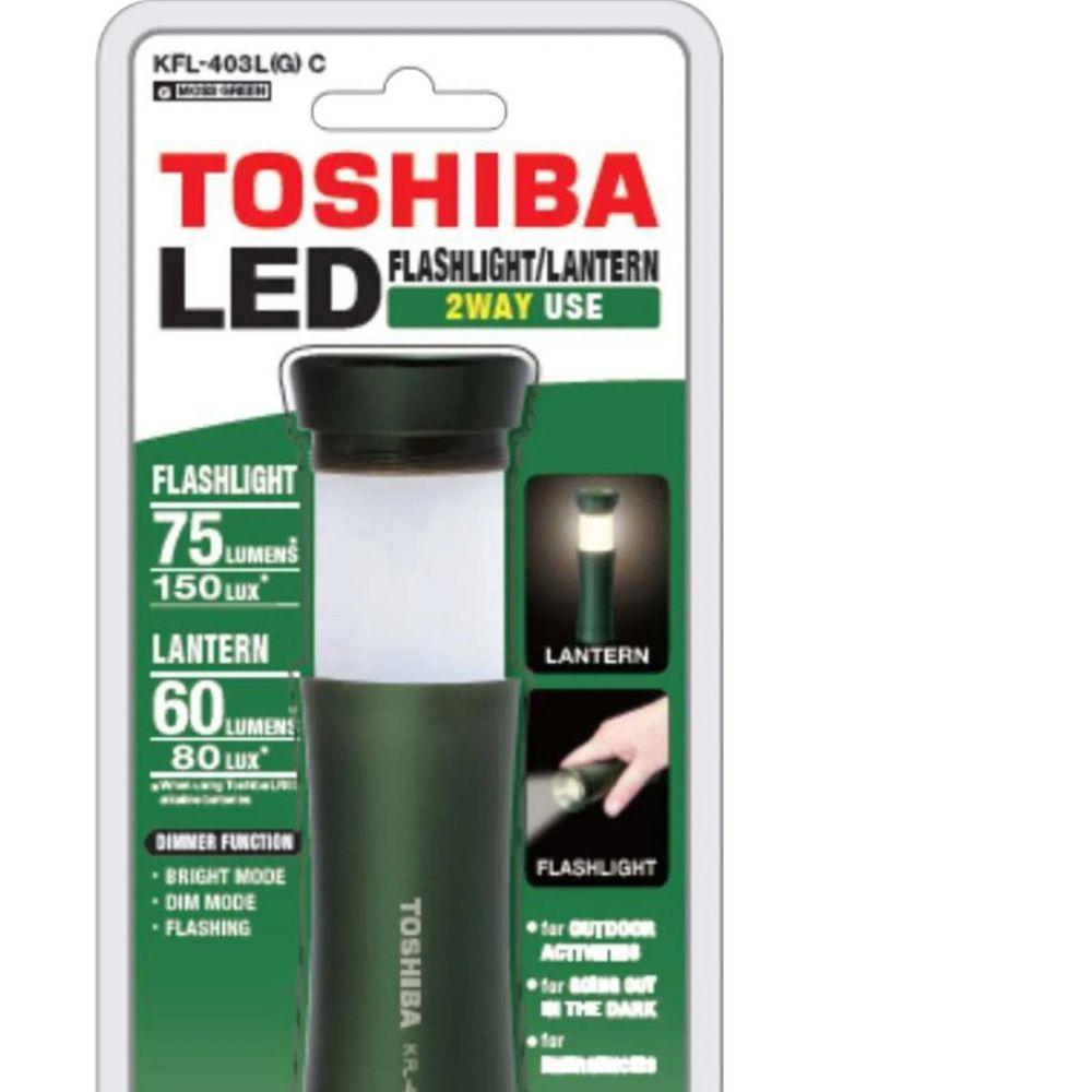 Lanterna Toshiba 2way Kfl-403l VerdeModelo: 2WAY KFL-403LA Lanterna Toshiba 2WAY KFL-403L é versátil e poderosa. Com seu design bidirecional, oferece uma luz brilhante de 75 Lumens / 150LUX e uma segunda opção de 60 Lumens / 80LUX. Leve e compacta, pesando apenas 88g e com dimensões de f39 x 101~141mm, é fácil de transportar e armazenar. Equipada com função Dimmer Blight/DIM/Piscando para atender às suas necessidades de iluminação. Além disso, possui um prático gancho para pendurar, proporcionando conveniência onde quer que você vá.Cor: VerdeAlimentação: AAA x 3 unidades *não inclusoInformação adicional:? Uso bidirecional, 1 luz flash, 2 lanternas? Lanterna 75 Lumens / 150LUX? Lanterna 60 Lumens / 80LUX? 88g/f39 x 101~141mm? Função Dimmer Blight/DIM/Piscando? Com gancho para pendurar