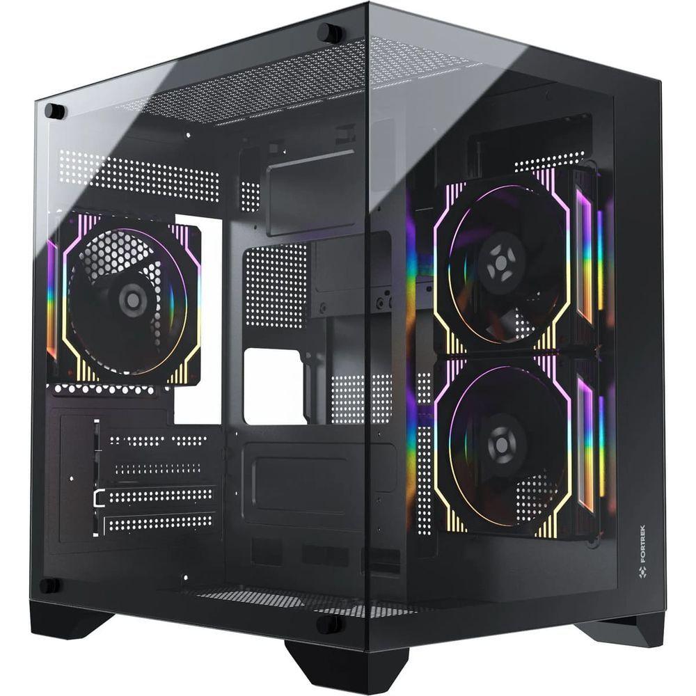 Gabinete Gamer Fortrek Clarity Preto Lateral VidroModelo: ClarityO Gabinete Gamer Fortrek Clarity é um modelo que une performance e estilo em um único produto. Compatível com placas mãe Micro ATX e Micro ITX, ele se destaca pelos painéis frontais e laterais totalmente em vidro temperado, proporcionando uma visão completa do interior e valorizando a estética do setup.Com suporte para até 7 cooling fans, o Clarity garante uma excelente ventilação, mantendo o sistema sempre refrigerado. Além disso, este modelo ainda conta com 4 slots PCI, oferecendo flexibilidade na expansão, e suporte para GPUs de até 330mm, permitindo que você instale placas de vídeo de alta performance sem comprometer o espaço. Assim, o Gabinete Gamer Fortrek Clarity é a escolha ideal para gamers que querem o máximo em desempenho e visual.Dimensões: 340 x 270 x 350mmCor: PretoBaias internas: 3,5? x 2 / 2,5? x 2USB: USB 3.0 * 1 + USB 2.0 * 2 + áudio HDInformação adicional:? Compatível com micro ATX / micro ITX? Fortrek?s Cube Model? Painéis frontais e laterais totalmente em vidro temperado? Suporte para 7 Cooling Fans? Slot para 4 PCIs? Suporte para GPU de 330mmEspecificações técnicas:? Altura do cooler para CPU: Até 140mm? Comprimento da GPU: Até 330mm? Cooler traseiro: 1 x 120mm*? Cooler superior: 2 x 120mm*? Cooler inferior: 2 x 120mm*? Cooler lateral: 2 x 120mm*? Slots de expansão: 4*Itens não inclusos