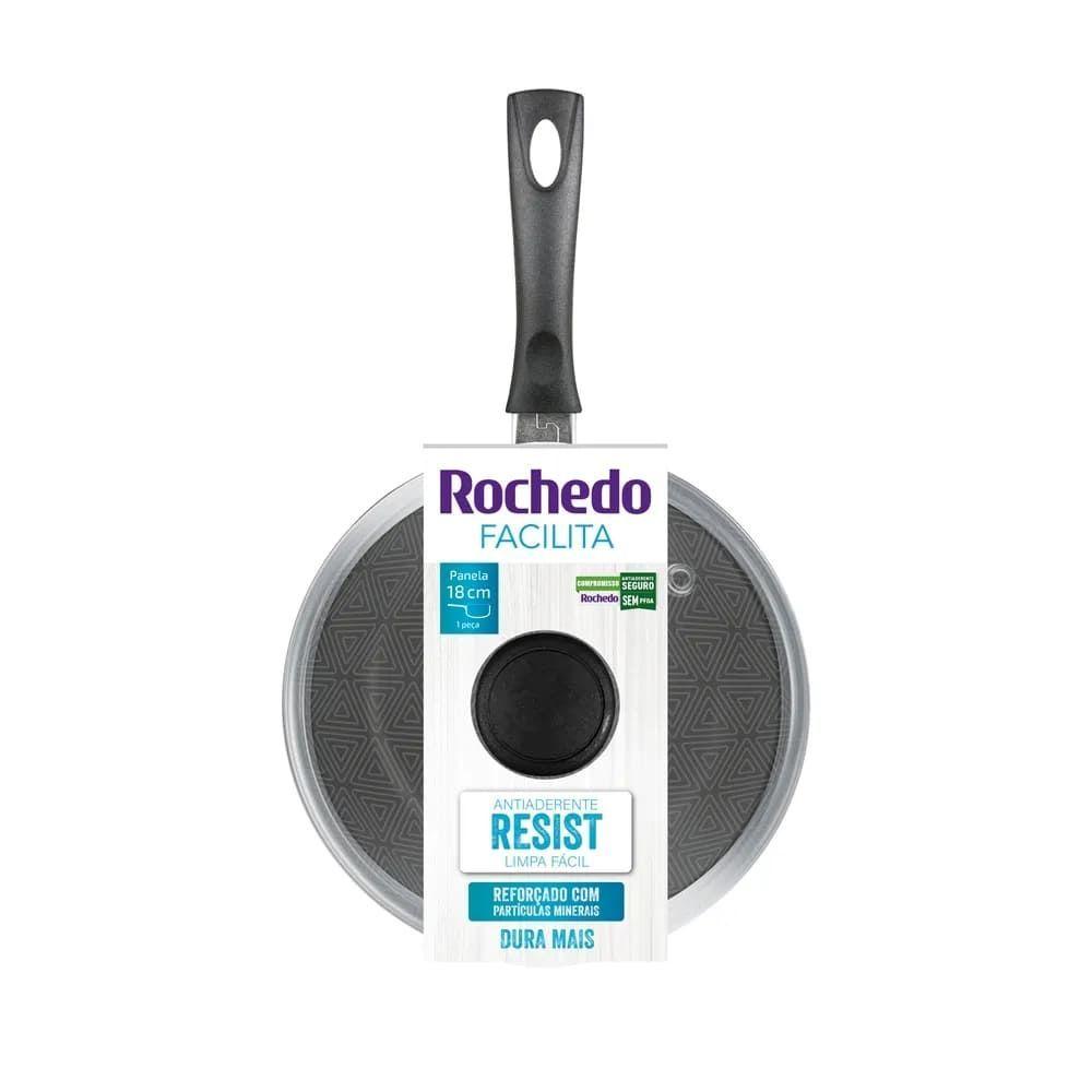 Panela Rochedo Facilita 18cm - 5861034138 VermelhoLinha Rochedo Facilita, com antiaderente Resist Limpa fácil, reforçado com partículas minerais: Dura mais. Com a Panela Rochedo Facilita Vermelha 18cm, você facilita seu dia a dia, com design moderno na cor vermelha, é o item ideal para sua cozinha. Conheça todos os diferenciais dessa linha:Antiaderente Resist: Limpa fácil e dura mais, reforçado com partículas minerais.Base Limpa Fácil: Não mancha, não gruda e é fácil de limpar.Tampa de vidro: Com saída de vapor.Cabos reforçados: mais segurança e conforto.Além de contar com a qualidade da marca Rochedo, presente no Brasil há mais de 100 anos, a Panela Rochedo Facilita Vermelha 18cm é livre de substâncias tóxicas (PFOA), garantindo a segurança no uso dos produtos. Pode ser utilizada em fogão a gás, vitrocerâmico e elétrico, podendo também ser levada à máquina de lavar louças.Conteúdo da Embalagem1 Panela 18cmRegistro no INMETRO007662/2023Instruções de CuidadosNão usar no micro-ondas e freezer. Prefira utensílios de cozinha não metálicos ao manuseá-la. Lave com o lado não abrasivo da esponja. Realize a cura inicial para ativar o antiaderente. Pode ir em todos os tipos de fogões, exceto indução.Benefício do produto? Antiaderente Resist: Limpa fácil e dura mais, reforçado com partículas minerais.? Thermo-Sinal: Muda de cor indicando o momento ideal para selar o seu alimento.? Base Limpa Fácil: Não mancha, não gruda e é fácil de limpar.? Cabos reforçados: mais segurança e conforto.CorVermelhoGarantia3 mesesTipo de MaterialAlumínioComp. Cabo (cm)14,4cmDiâmetro (em cm)18Volume1,9 litrosTipo de Embalagem IndividualAdesivo