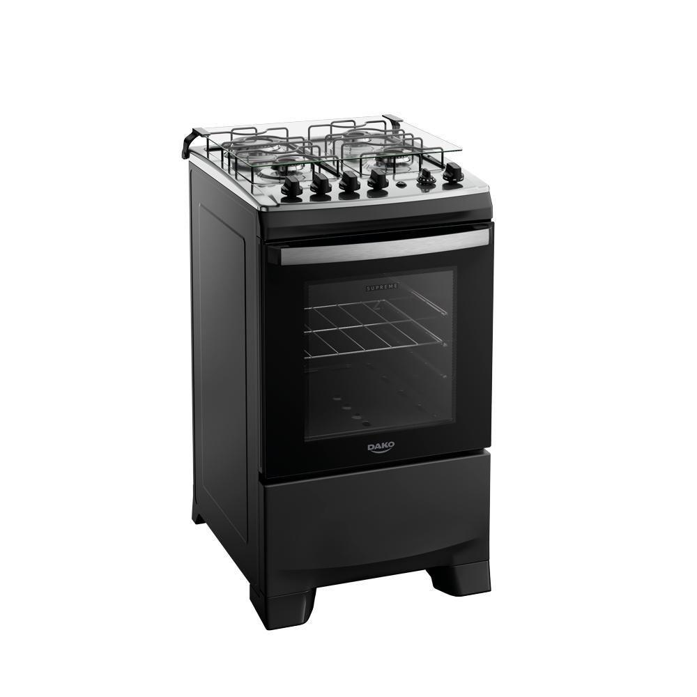 Fogão 4 Bocas Dako Supreme Mesa de Inox e Timer Bivolt - Preto