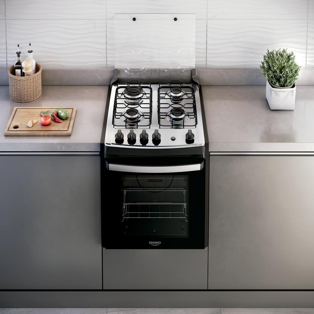 Fogão 4 Bocas Embutir Dako Supreme Mesa De Inox Preto BivoltTransforme sua experiência culinária com o Fogão de Embutir 4 Bocas Dako Supreme, o fogão completo que une sofisticação, desempenho e praticidade para todas as suas receitas diárias.Com puxador em alumínio escovado e mesa em inox, o fogão de embutir traz robustez e elegância para sua cozinha, combinando resistência com design moderno que valoriza seu ambiente.Explore todas as possibilidades culinárias com as bocas de diferentes potências. A Mega Chama proporciona mais rapidez na cocção, perfeito para o preparo de pratos que exigem calor intenso.Acompanhe o progresso de suas receitas sem interromper o cozimento graças ao visor amplo do forno e iluminação interna. Esta combinação garante visibilidade total durante todo o processo, mantendo a temperatura estável e proporcionando resultados perfeitos em todas as suas preparações.A praticidade está presente em cada detalhe. As grades duplas de aço oferecem maior estabilidade para panelas de todos os tamanhos e contam com forno limpa Limpa Fácil que previne o acúmulo de sujeira. Os botões removíveis facilitam a limpeza diária, enquanto o acendimento automático traz segurança e conveniência com apenas um toque.Atributos e benefícios- Visão do forno amplo: acompanhe o preparo sem abrir a porta do forno- Puxador de alumínio escovado: design sofisticado, não deixa manchas, é resistente, oferece segurança e praticidade no uso diário- Grade dupla de aço: oferece estabilidade para as panelas, garantindo um uso prolongado e seguro- Tampa de vidro: protege contra sujeira e facilita a limpeza- Duas prateleiras (1 autodeslizante): se adaptam aos tamanhos dos preparos, oferecendo segurança e praticidade ao retirar alimentos- Forno com capacidade de 60 litros: espaço amplo para cozinhar mais de uma só vez- Mesa de inox: superfície resistente que evita o escoamento de líquidos, facilitando a limpeza e tornando o uso diário mais prático- Mega chama: potência extra para cozinhar com eficiência e agilidade** Atenção nas compras com CNPJ:Para que o pedido seja processado corretamente, é obrigatório informar no momento da compra:- Se o CNPJ é Contribuinte: deve-se indicar se o cliente é Isento ou possui Inscrição Estadual (IE).- Se o CNPJ é Não-Contribuinte: essa condição também deve ser informada. Ex: Isento- Pedidos sem essas informações serão automaticamente cancelados.- Não aceitamos atualizações via chat.Funcionamento: Gás Quantidades de Bocas: 4 Voltagem: Bivolt Tipo de montagem: De Embutir Cor: Preto Acabamento da Mesa: Inox Modelo: Supreme Glass Tipo de Acendimento: Automático Acabamento do Forno: Limpa Fácil Trempe: Dupla de Aço Esmaltado Capacidade do Forno (L): 60 Litros Lâmpada Bivolt acompanha o produto: Sim Potência (kW): 8,7 Vidro porta do forno: Vidro duplo temperado Grill: Não Potência Forno (kW): 2,00 Acabamento Interno do Forno: Esmalte Limpa Fácil Prateleiras: 1 Deslizante e 1 Autodeslizante Dimensões do Produto (largura x altura x profundidade) em cm: 55,5 x 66,3 x 68,7 Potência dos Queimadores: 2 queimadores semirrápidos de 1,7kW, 1 queimador rápido de 2,0kW e 1 queimador Mega Chama de 3,3kW Sensor Pré-Aquecimento: Não Puxador: Alumínio escovado Válvula de segurança do forno: Sim Convecção: Não Peso do produto sem embalagem: 23,6kg Dimensões do Nicho (largura x altura x profundidade) em cm: 52,5 x 59,8 x 58,6 Luz no Forno: Sim Tipo de gás: GLP Marca: Dako Botões Removíveis: Sim Vidro do Forno: Vidro Duplo Tipo de porta do forno: Com visor Grades do Forno: 2 Vidro da tampa: Vidro temperado Timer: Não Tamanho puxador: Médio Posição manípulos: Top Control Tipos de porta do forno: Com visor Voltagem: Bivolt