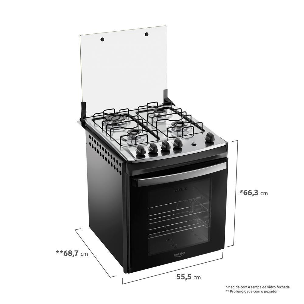 Fogão 4 Bocas Embutir Dako Supreme Mesa De Inox Preto Bivolt