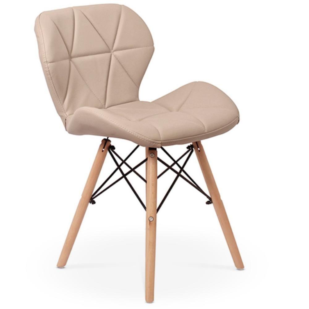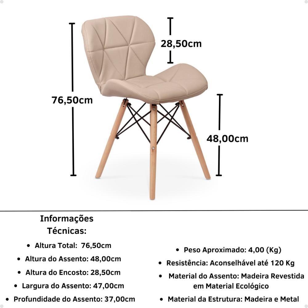 Kit 12 Cadeiras De Jantar Charles Eames Slim Wood Estofada - Nude