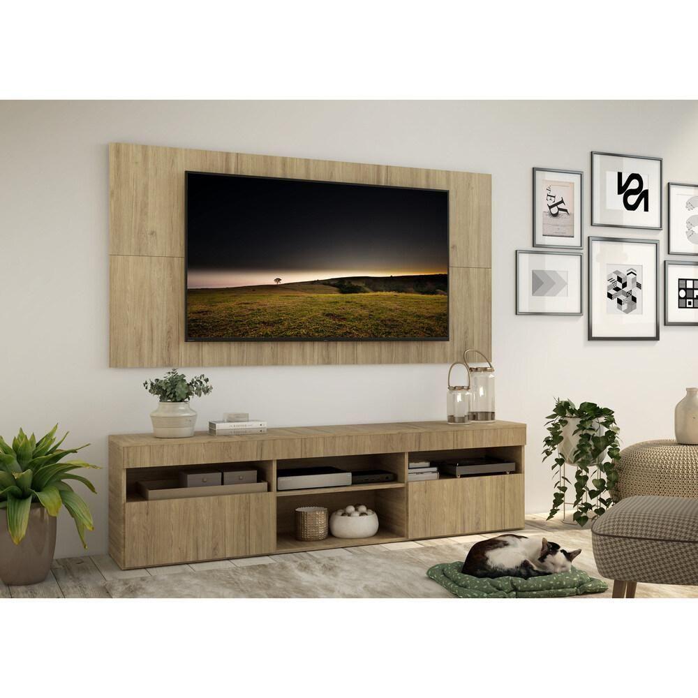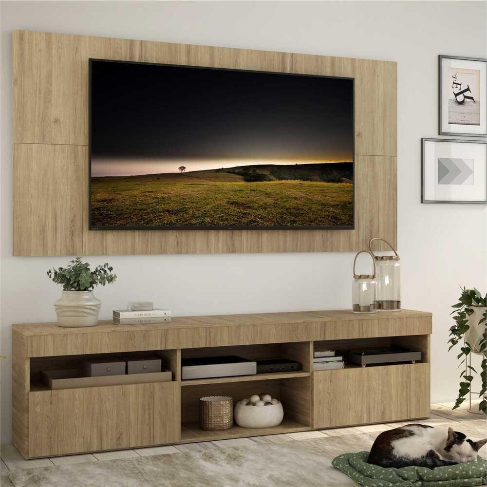 O Rack com Painel 65" com 2 portas Londres Multimóveis é produzido em MDP com acabamento acetinado, que garante maior durabilidade e facilidade na limpeza, possui 4 nichos com espaço para os equipamentos eletrônicos e objetos decorativos, além de 2 portas articuladas com um amplo espaço interno para manter seus pertences organizados. O painel para de até 65” possui espaçamento para passagem dos fios, que permite deixar os cabos mais organizados e o visual clean. A sala de estar é o melhor lugar para receber a família e amigos, por isso ter um ambiente bonito e aconchegante é fundamental.Conteúdo da Embalagem:1 (um) rack com painel para Dimensões do produto montado:Painel - Altura: 90cm | Largura: 175cm | Profundidade: 2,5cmRack - Altura: 48cm | Largura: 175cm | Profundidade: 35cm*Devido as variações de tamanho dos televisores no mercado, sugerimos que verifique as medidas da sua e compare com o painel antes de efetuar a compra.*Você pode consultar as medidas internas na imagem técnica do produto.As cores do produto podem sofrer variações de tonalidade de acordo com as configurações do seu dispositivo.Imagem meramente ilustrativa. Decoração e eletros não acompanham o produto. O produto será entregue desmontado e não disponibilizamos o serviço de montagem.