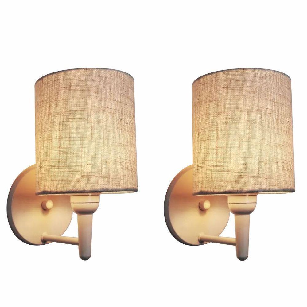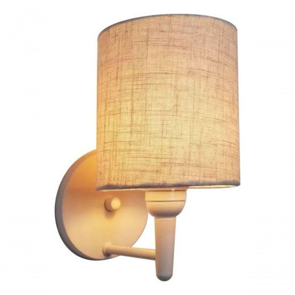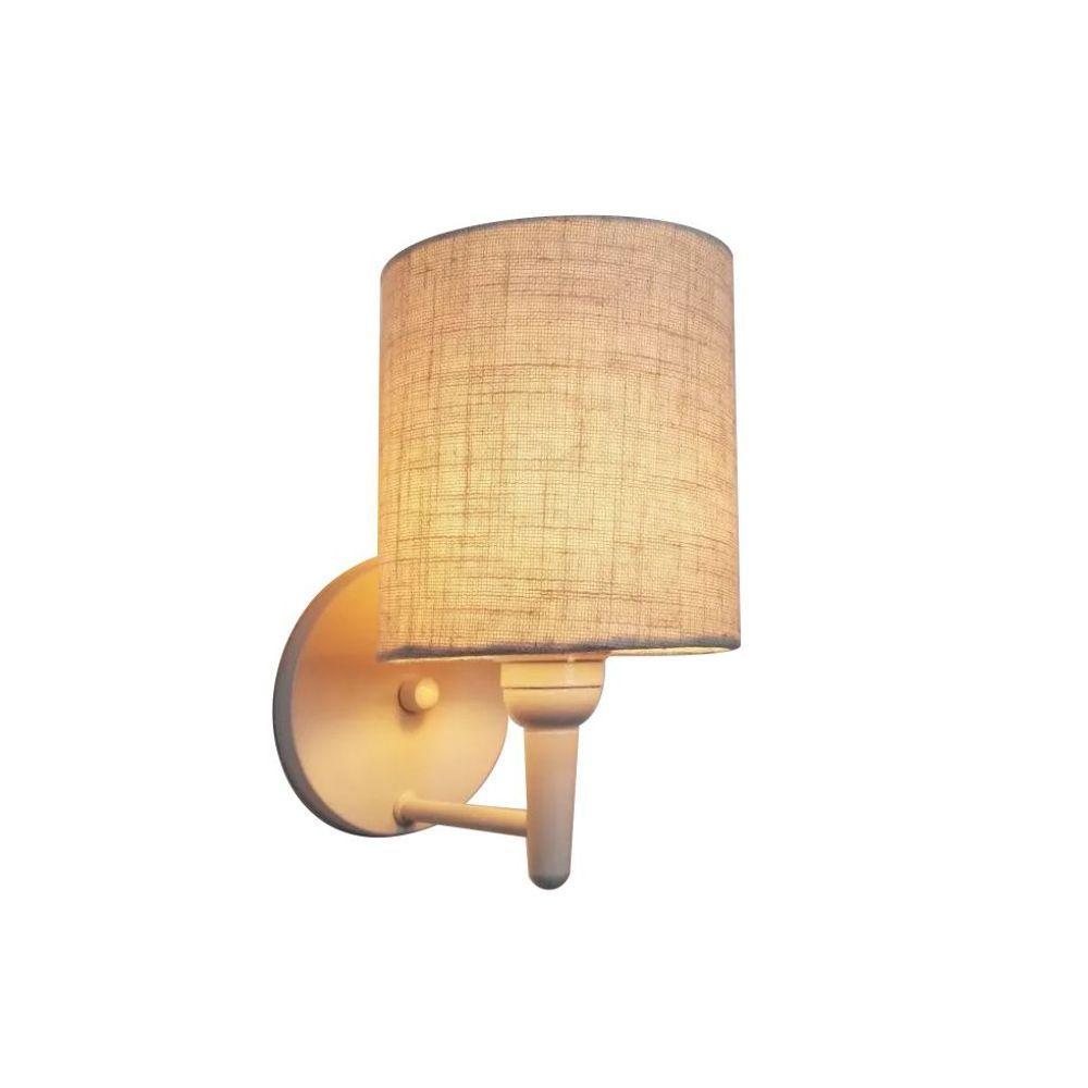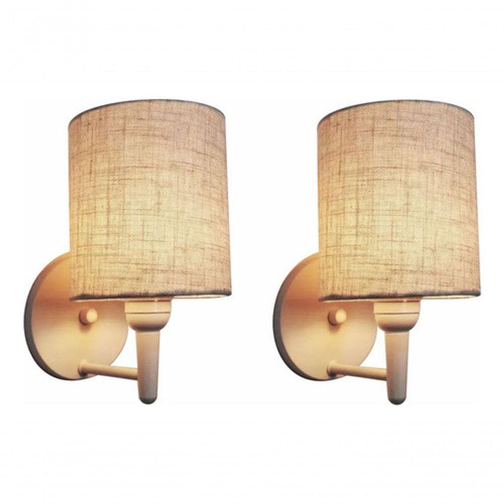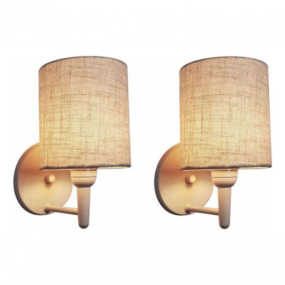 Kit/2 Arandela Cilíndrica Md-2009 Base Branco Cúpula Em Tecido 14x15cm Rustico Bege - Bivolt