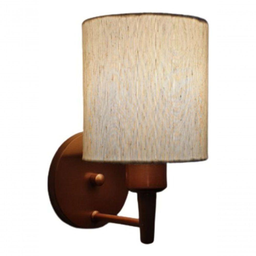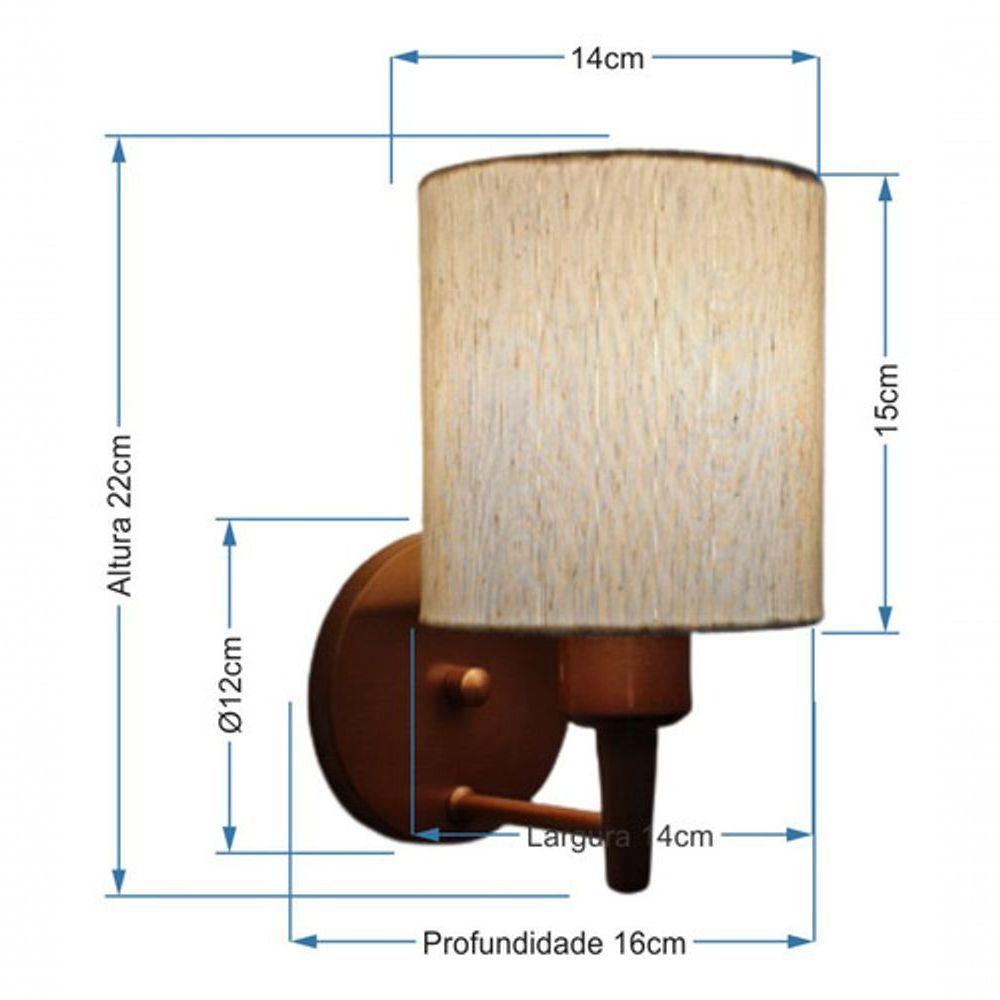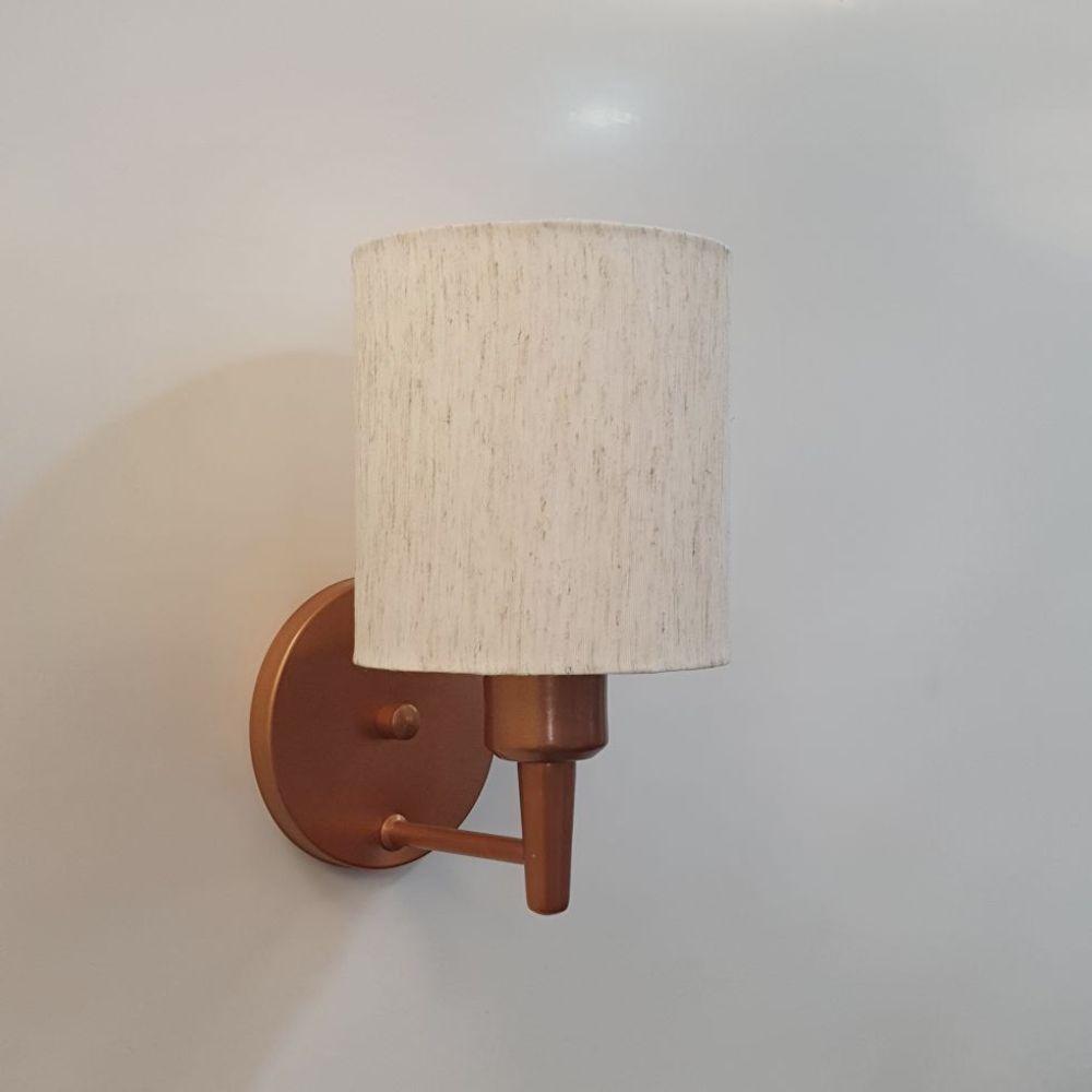 Arandela Cilíndrica Md-2009 Base Cobre Cúpula Em Tecido 14x15cm Linho Bege - Bivolt