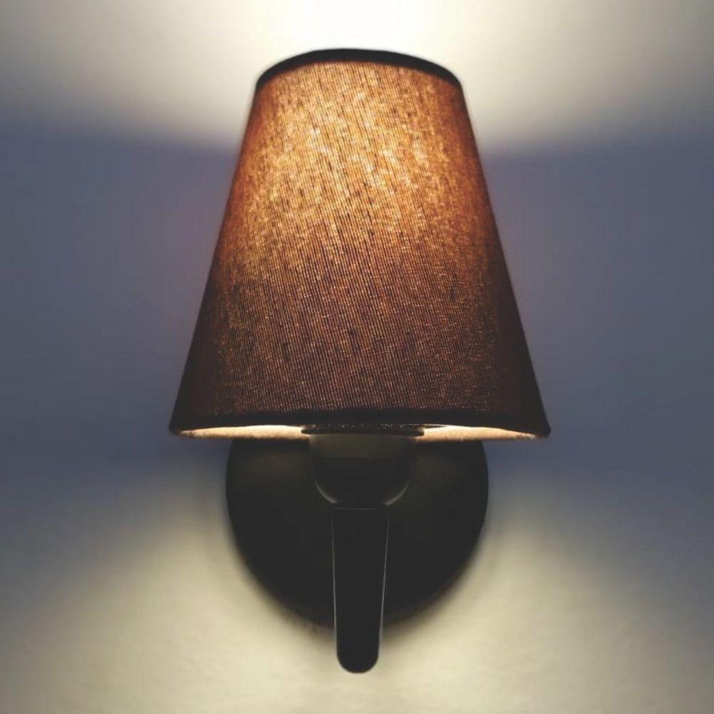 Arandela Cone Md-2004 Base Preto Cúpula Em Tecido 14/14x07cm Café - Bivolt