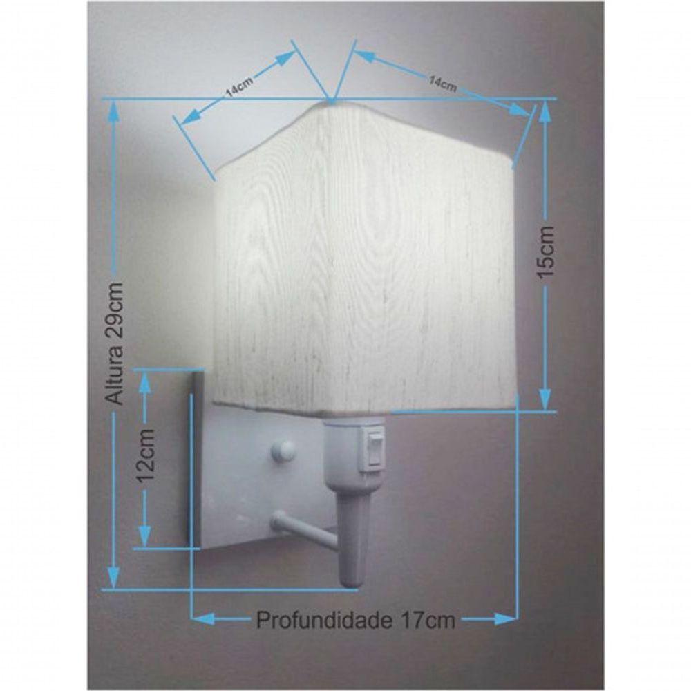 Arandela Quadrada Md-2019 Branco C- Inter Liga E Desl Cúpula Em Tecido Linho Bege - Bivolt