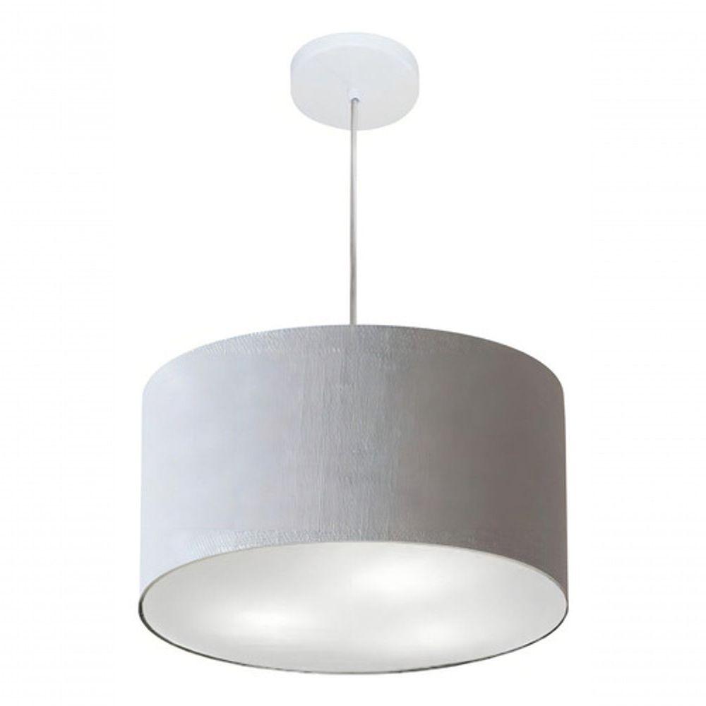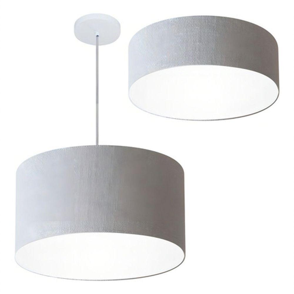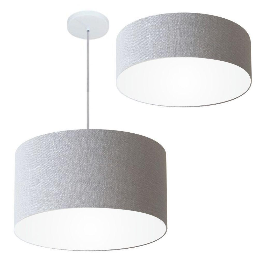 Kit Plafon Cilíndrico Md-3005 E Pendente Md-4019 Cúpula Em Tecido 40cm Rústico Cinza - Bivolt