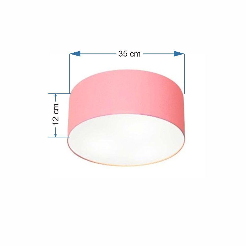 Plafon Cilíndrico Md-3046 Cúpula Em Tecido 35x12cm Rosa Bebê - Bivolt