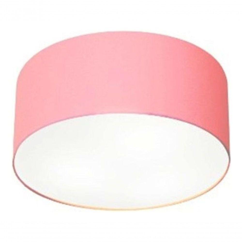 Plafon Cilíndrico Md-3010 Cúpula Em Tecido 30x12cm Rosa Bebê - Bivolt