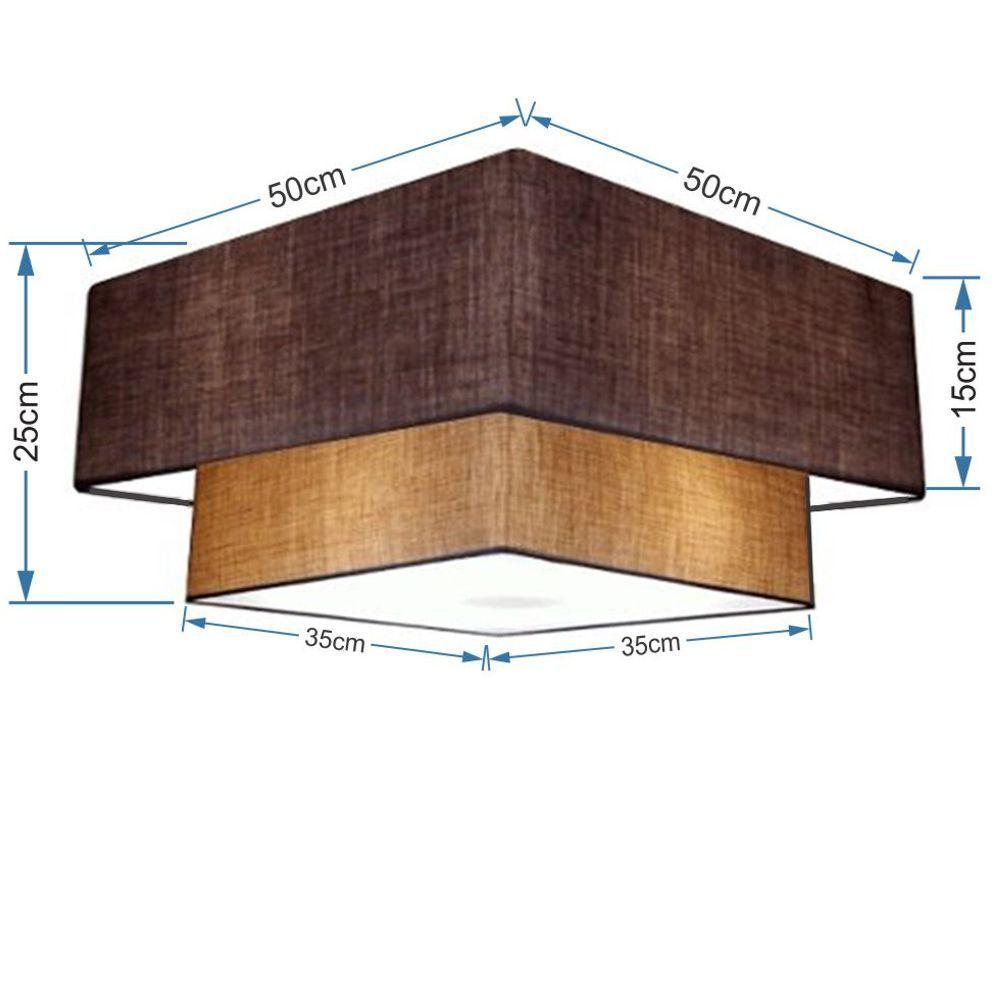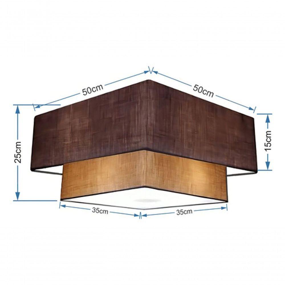 Plafon Duplo Quadrado Md-3022 Cúpula Em Tecido 25/50x35cm Café / Palha - Bivolt