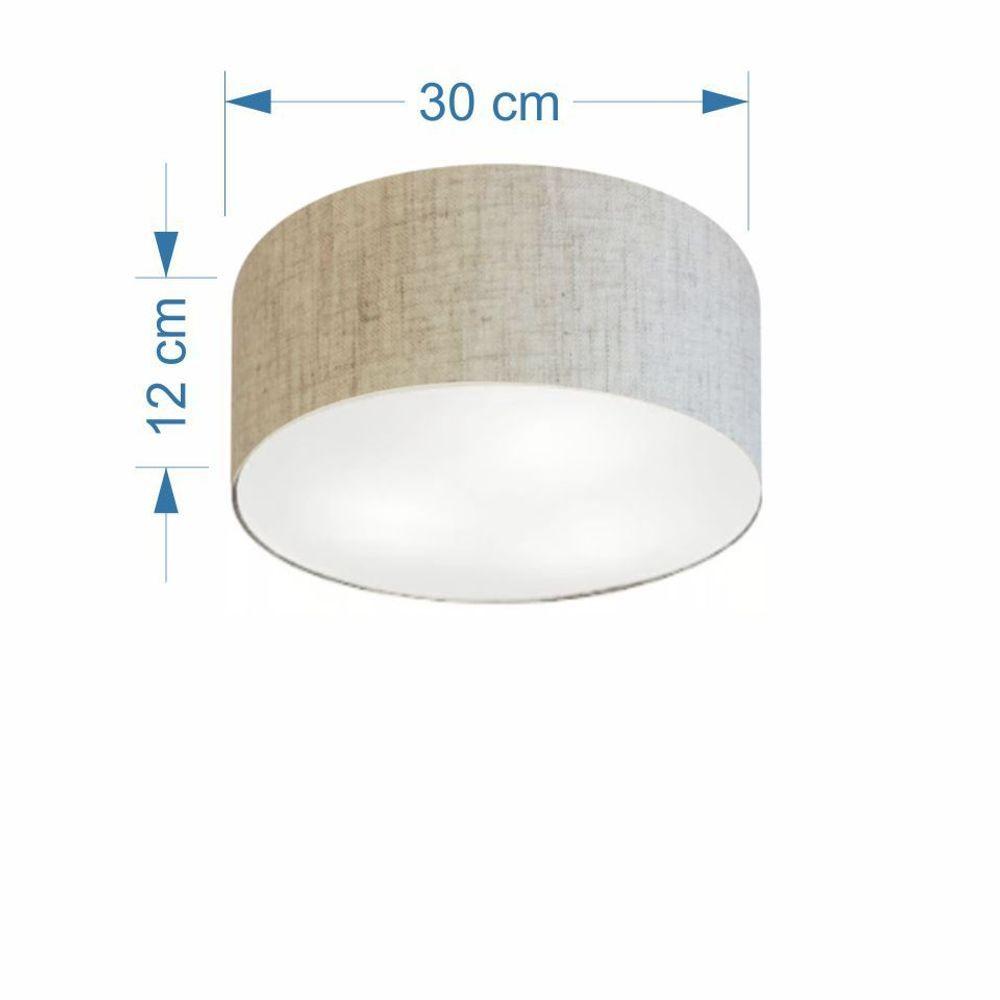 Plafon Para Sala De Estar Cilíndrico Se-3010 Cúpula Cor Rústico BegePlafon para sala de estar cilíndrico SE-3010 cúpula cor Rústico bege - BivoltPlafon sobrepor Vivare Iluminação utilizados para decorar e iluminar, utilizando plafon para sala de estar, todos em cúpula em tecido que e diferenciado e tem o formato simples e moderno, produzido com variação de cores e tamanho, pensado em compor todos os ambientes, seja ele residencial ou comercial. O design moderno do plafon de sobrepor traz o benefício de ser em tecido é sua funcionalidade, que proporciona uma iluminação bem distribuída por todo o espaço, garantindo sofisticação e uma ótima qualidade.Dimensão:Cúpula em Tecido 30x12cmFormato: CilíndricoTamanho: pequenoTipo: plafon tetoEspecificação:Materiais: Cúpula em tecidoCúpula com tampa inferiorResistente: À maresiaVoltagem: 110V/220VTipo de soquete: e27Tipos de lâmpada: led bulbo até 16w ou fluorescente espiral até 25w cadaQuantidade de lâmpada necessária: 2Observação:Acompanha lâmpadas: NãoPossui led integrado: NãoGarantia: 12 mesesManual de instalação: Sim