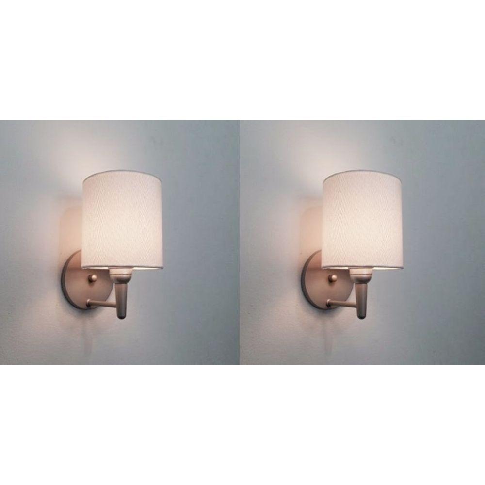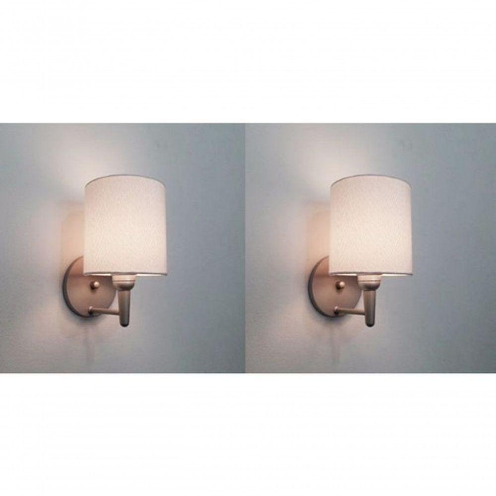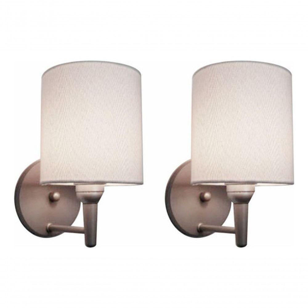 Kit-2 Arandela Cilíndrica Md-2009 Base Cinza Cúpula Em Tecido 14x15cm Branco - Bivolt