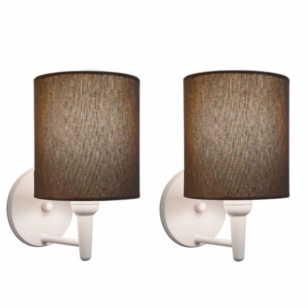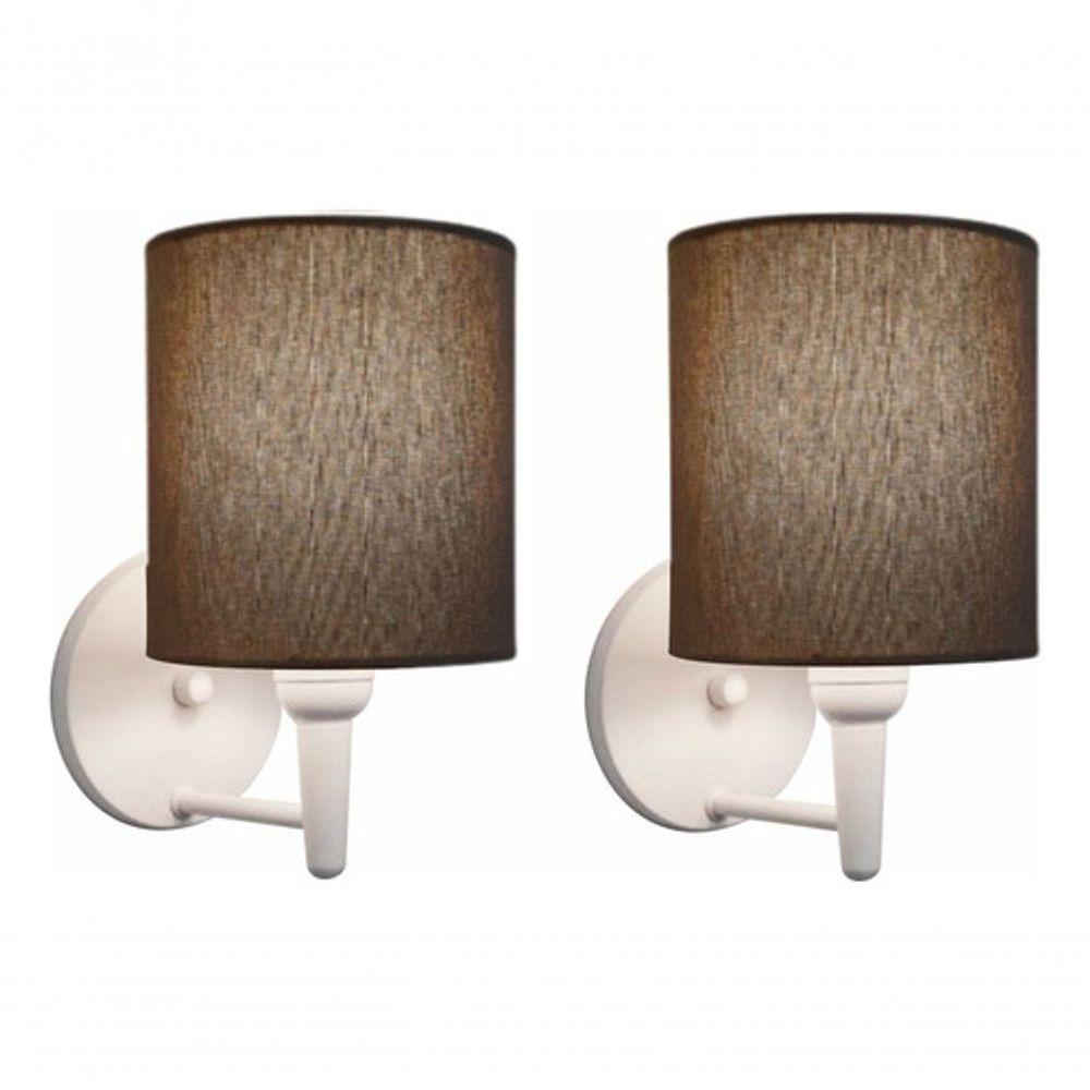 Kit-2 Arandela Cilíndrica Md-2009 Base Branco Cúpula Em Tecido 14x15cm Caqui - Bivolt