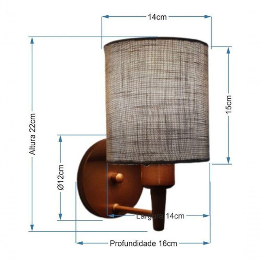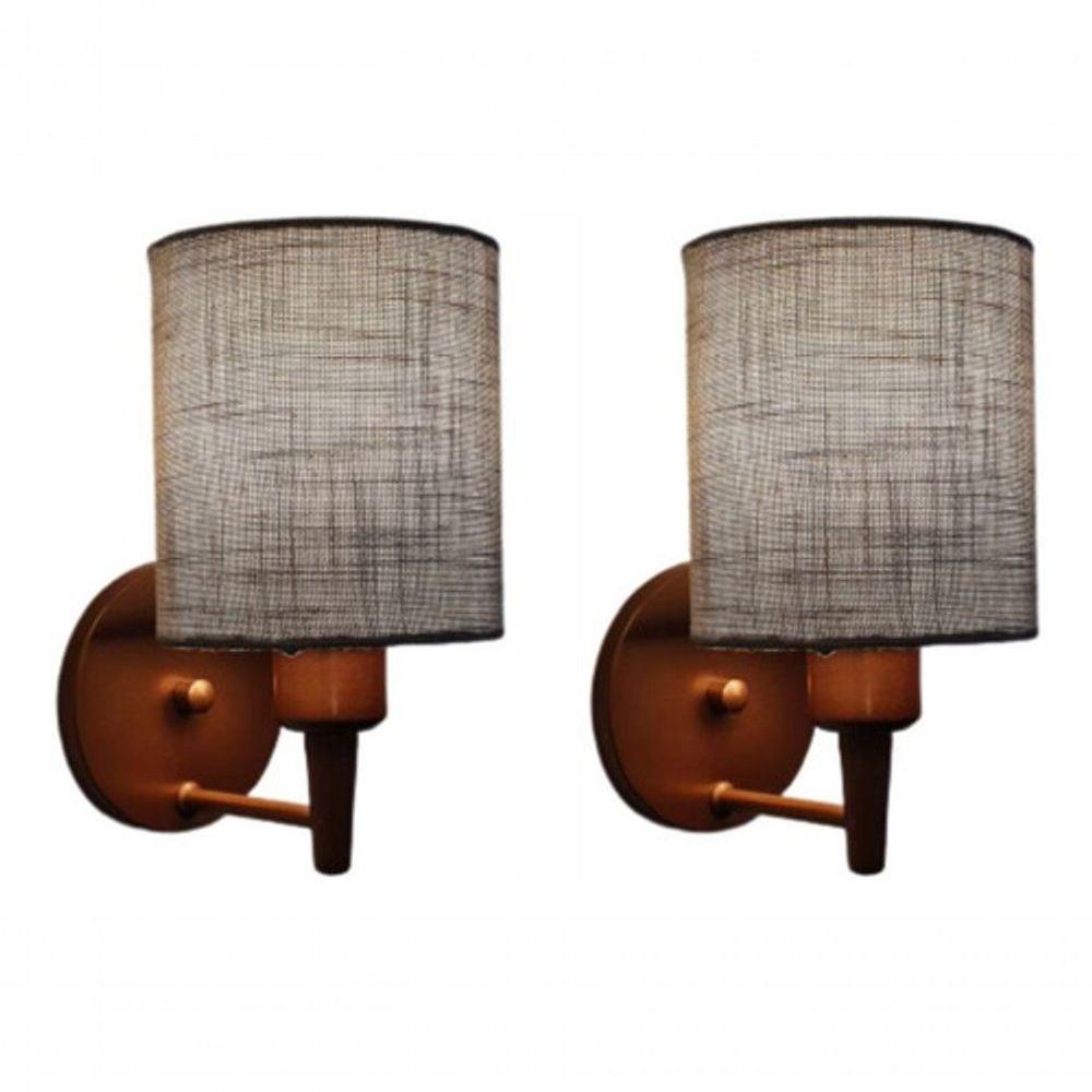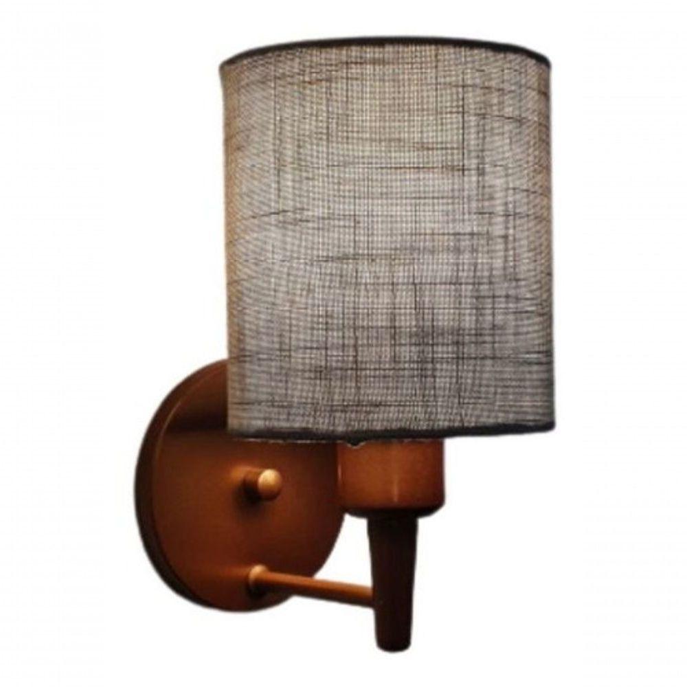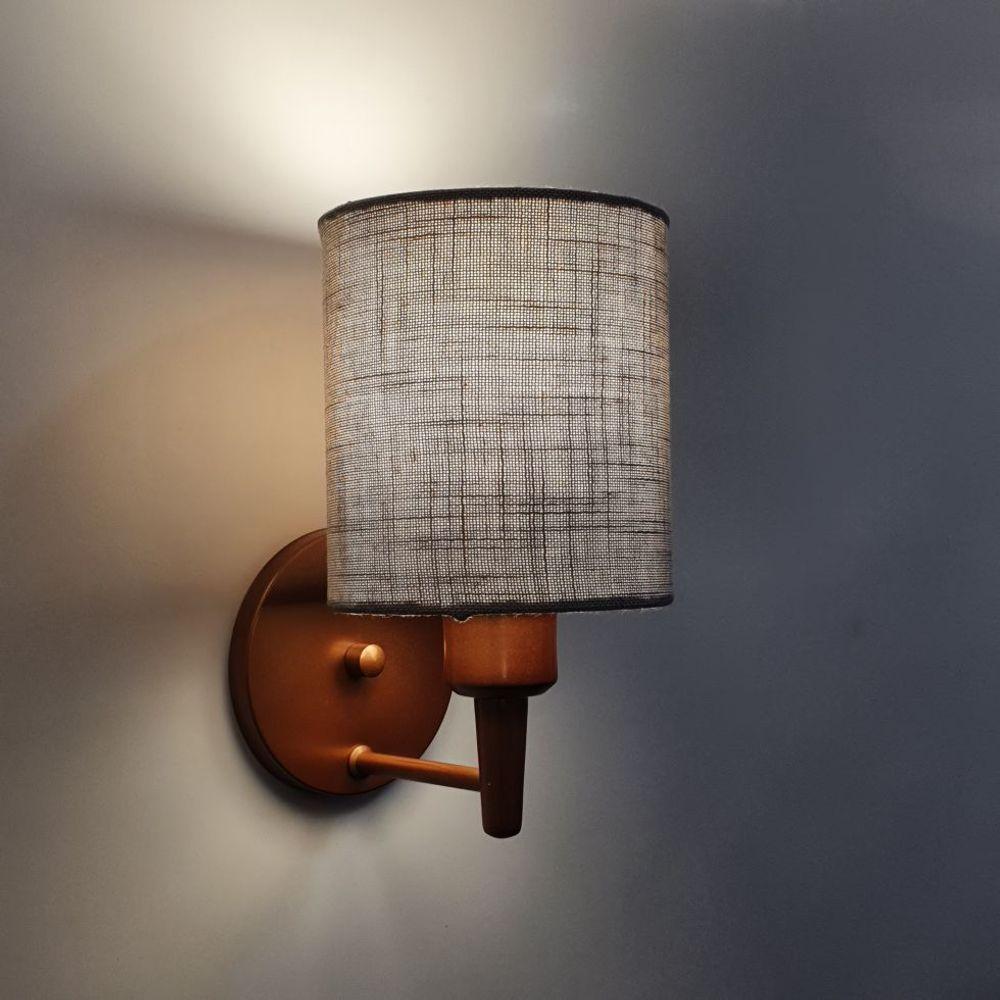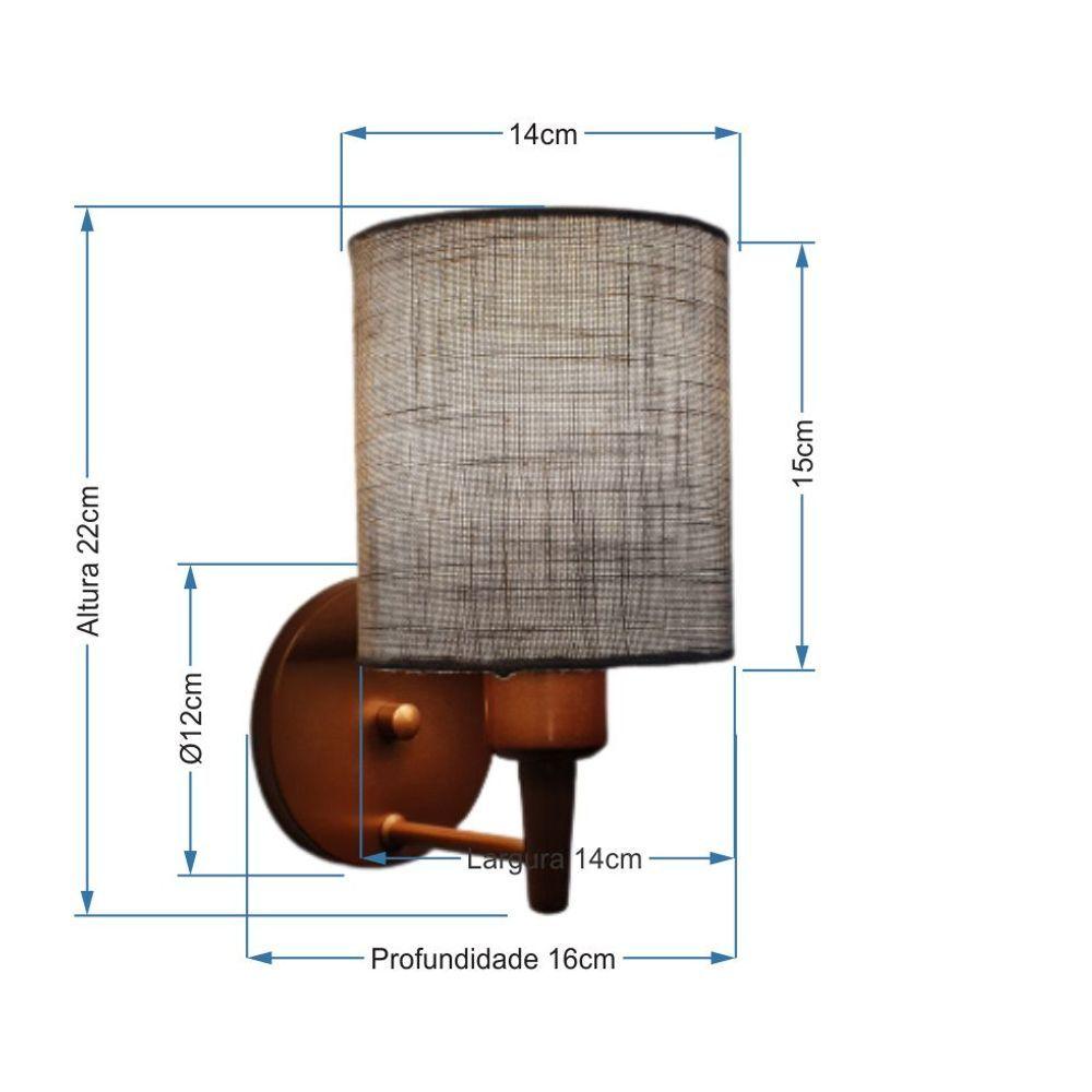 Kit-2 Arandela Cilíndrica Md-2009 Base Cobre Cúpula Em Tecido 14x15cm Rustico Cinza - Bivolt