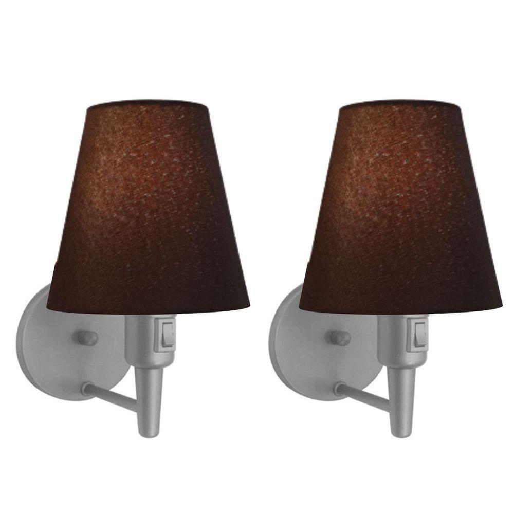 Kit-2 Arandela Cone Md-2013 Cinza C- Inter Liga E Desl Cúpula Em Tecido Café - Bivolt