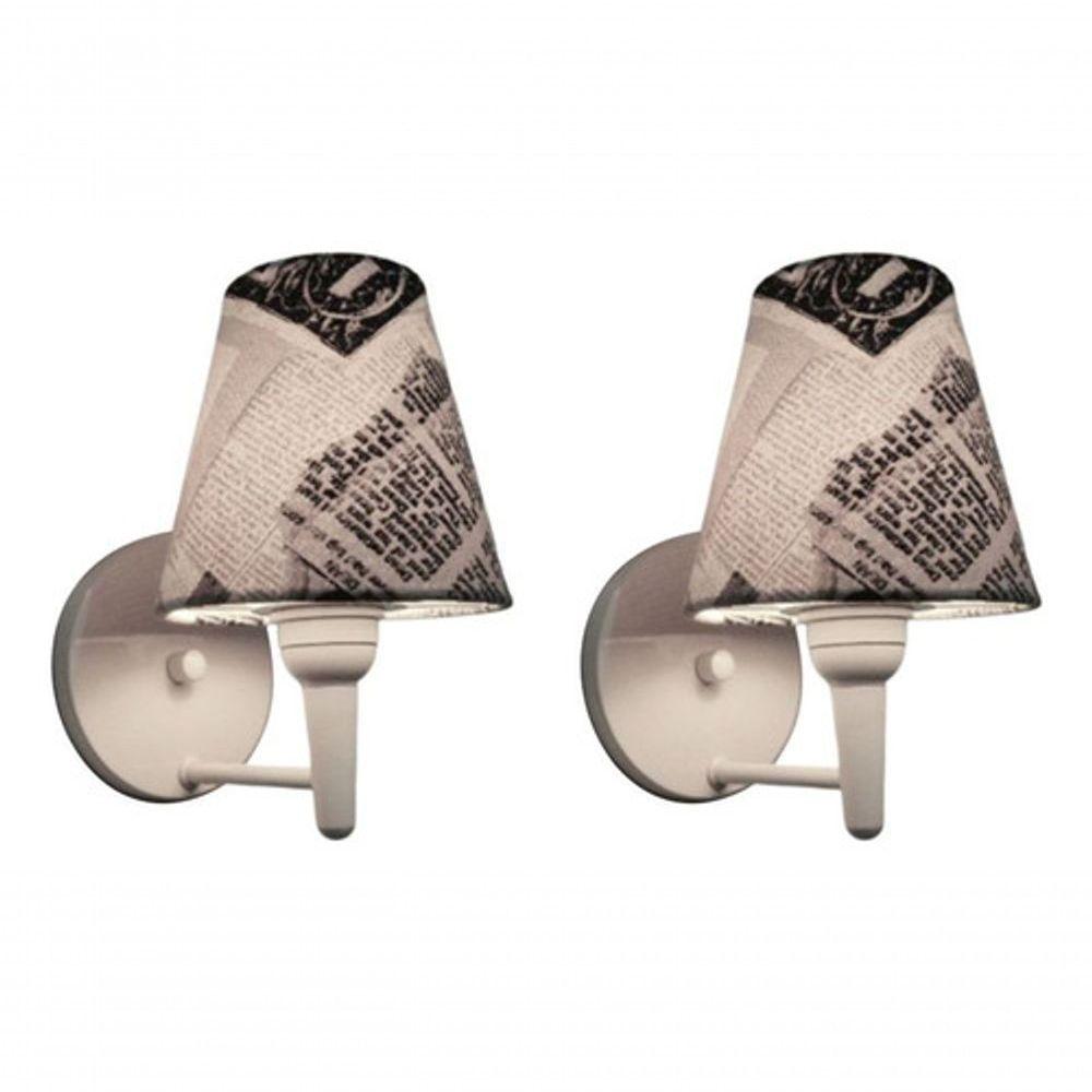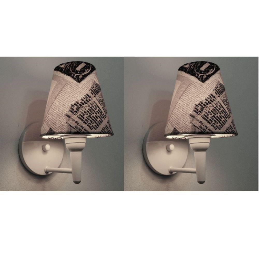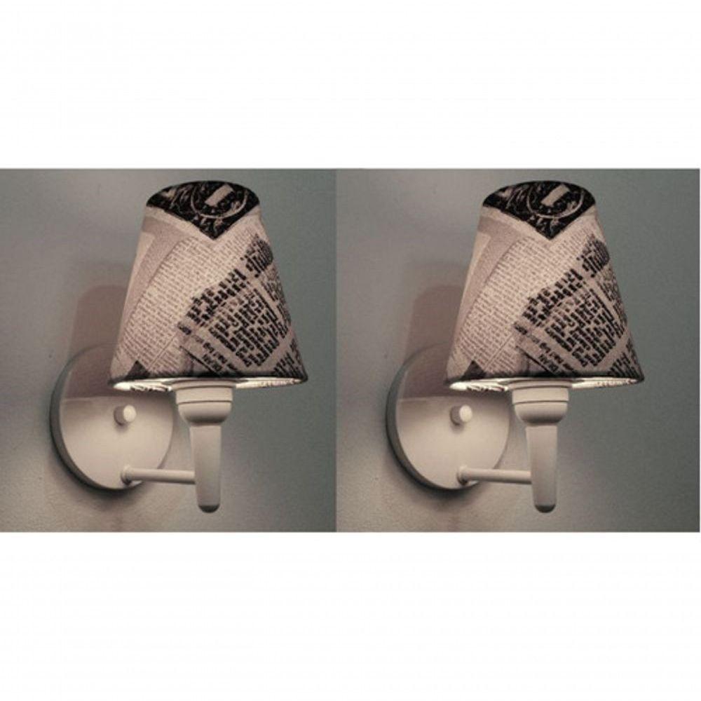 Kit-2 Arandela Cone Md-2004 Base Branco Cúpula Em Tecido 14-14x07cm Ny-jornal - Bivolt