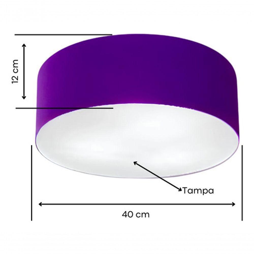 Plafon Cilíndrico Vivare Md-3005 Cúpula Em Tecido 40x12cm - Bivolt Roxo 127/220v