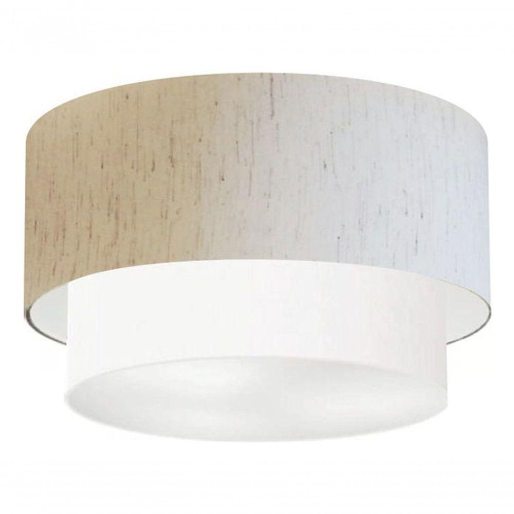 Plafon Duplo Cilíndrico Vivare Md-3045 Cúpula Em Tecido 40x35cm - Bivolt Linho-bege-branco 127/220v