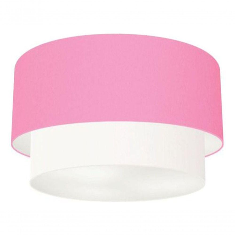 Plafon Duplo Cilíndrico Vivare Md-3045 Cúpula Tecido 40x35cm - Bivolt Rosa-bebê-branco 127/220v