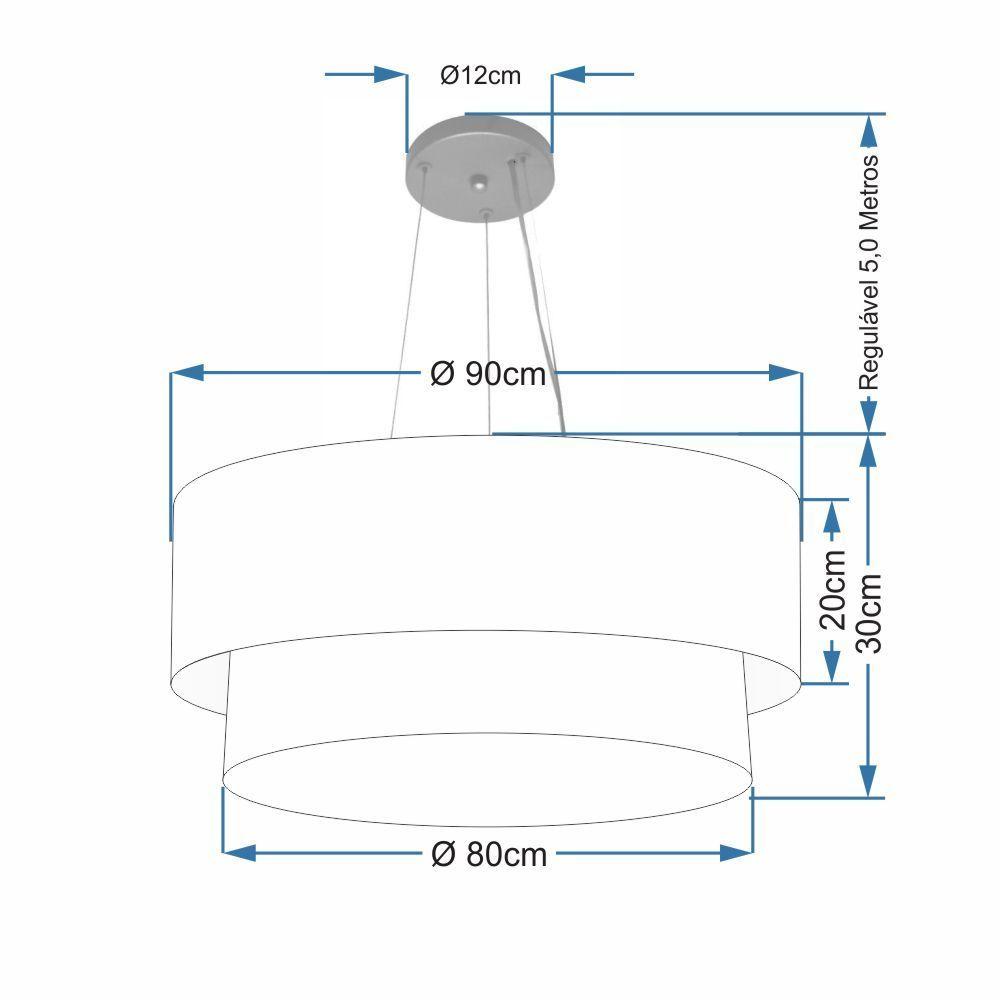Plafon Duplo Cilíndrico Vivare Md-3045 Cúpula Em Tecido 40x35cm - Bivolt Algodão-crú-branco 127/220v