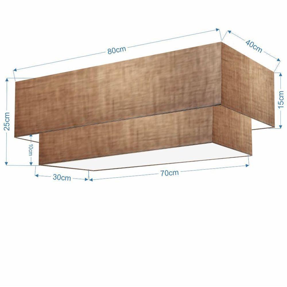 Plafon Duplo Retangular Vivare Md-3071 Cúpula Em Tecido 80x40cm X 70x30cm - Bivolt Palha 127/220v