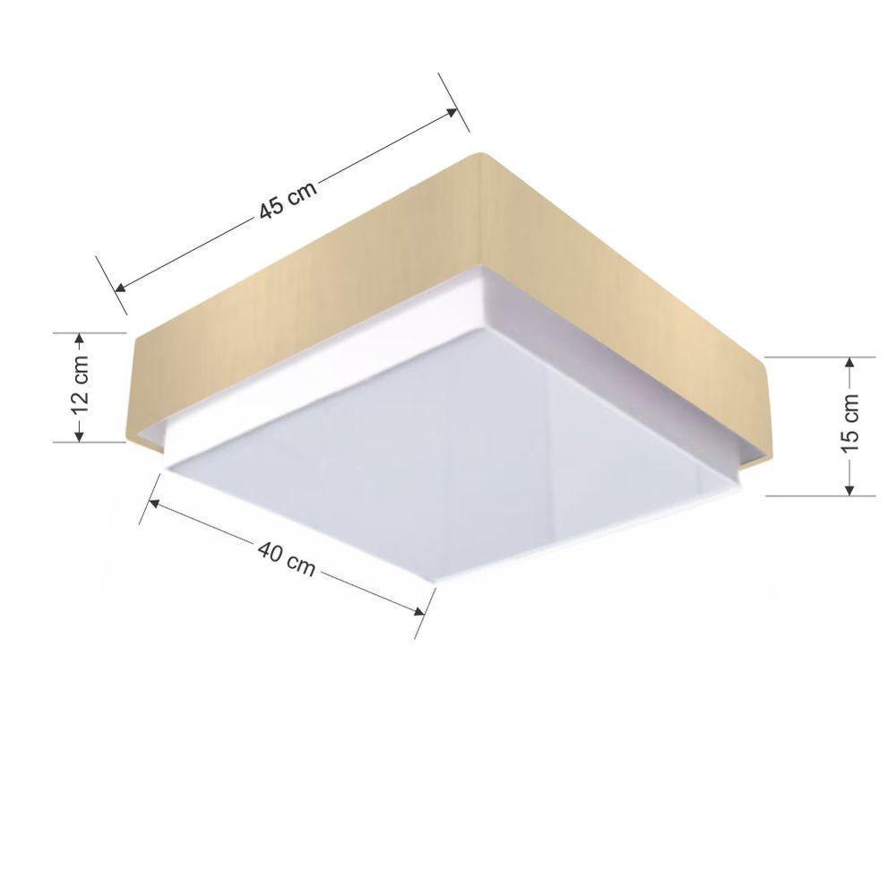 Plafon Quadrado Vivare Md-3090 Cúpula Em Tecido 45x45cm - Bivolt Algodão-crú 127/220vPlafon Sobrepor Quadrado Vivare Md-3090 Cúpula em Tecido 45x45cm BivoltPlafon sobrepor Quadrado Duplo Vivare Iluminação utilizados para decorar e iluminar, Diversos modelos, todos em cúpula em tecido que e diferenciado e tem o formato simples e moderno, produzido com variação de cores e tamanho, pensado em compor todos os ambientes, seja ele residencial ou comercial. O design moderno do plafon de sobrepor traz o benefício de ser em tecido é sua funcionalidade, que proporciona uma iluminação bem distribuída por todo o espaço, garantindo sofisticação e uma ótima qualidade.Dimensão: Cúpula em TecidoCúpula em Tecido 15x45x40cmFormato: QuadradoTamanho: MédioTipo: Plafon TetoEspecificação:Materiais: Cúpula em tecidoCúpula com tampa inferiorResistente: Á MaresiaVoltagem: 110V/220VTipo de Soquete: E27Tipos de lâmpada: Led Bulbo até 16w ou Fluorescente Espiral até 25w CadaCapacidade de lâmpadas: 3Observação:Acompanha lâmpadas: NãoPossui Led Integrado: NãoGarantia: 12 MesesManual de instalação: Sim