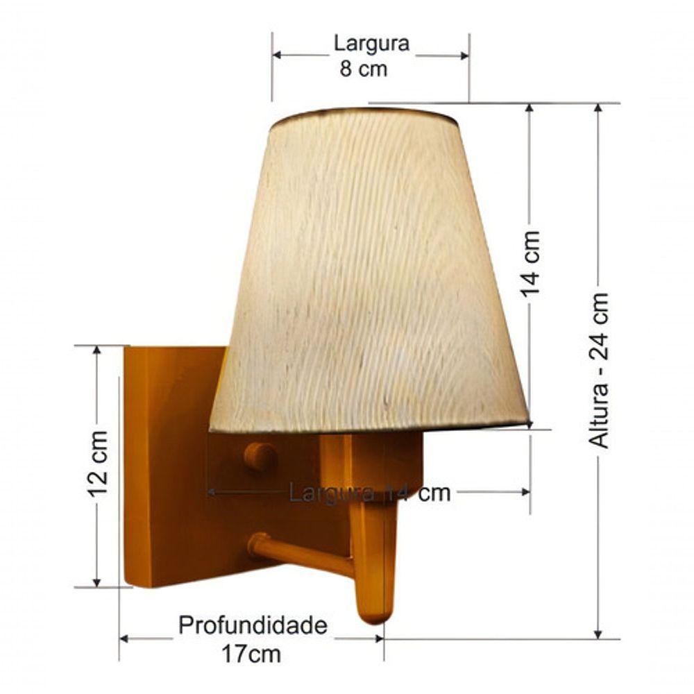 Arandela Quadrada Md-2034 Cobre Cúpula Em Tecido Cone Linho Bege - BivoltArandela de parede Quadrada Md-2034 Cobre Cúpula em Tecido Cone Linho Bege - BivoltAs arandelas Lustres Vivare são elementos versáteis e elegantes que podem transformar qualquer ambiente em um espaço cheio de estilo. Seja para adicionar uma iluminação suave, destacar uma parede ou criar um efeito de luz diferenciado.Dimensão:Cúpula em Tecido: 14x07x14cmArandela de parede Montada: Altura 24cm Largura 14cm Profundidade 17cmFormato: Quadrado / ConeTamanho: PequenoEspecificação:Material: Cúpula em TecidoEstrutura em AlumínioBase Parede: Quadrado 12x12x2cmResistente: Á MaresiaVoltagem: 110V/220VLiga e Desliga: NãoTipo de Soquete: E27Lâmpada Utilizada: Led Bulbo Até 16w ou Fluorescente Espiral Até 25w cadaCapacidade de Lâmpadas: 1Observação:Acompanha Lâmpada: NãoPossui Led Integrado: NãoGarantia: 12 MesesManual de Instalação: SimArandela de parede Montada: SimControle de Luminosidade: NãoTipo de Embalagem: CaixaConservação e Manutenção do Produto:A Limpeza deve ser realizada com o produto desligado. Remova o lustre que pode ser lavado com sabão neutro. Nunca utilize produtos químicos e abrasivosDica:Antes de comprar o seu produto verifique as medidas, o local onde pretende instalar e se necessário o serviço de um profissional qualificado.