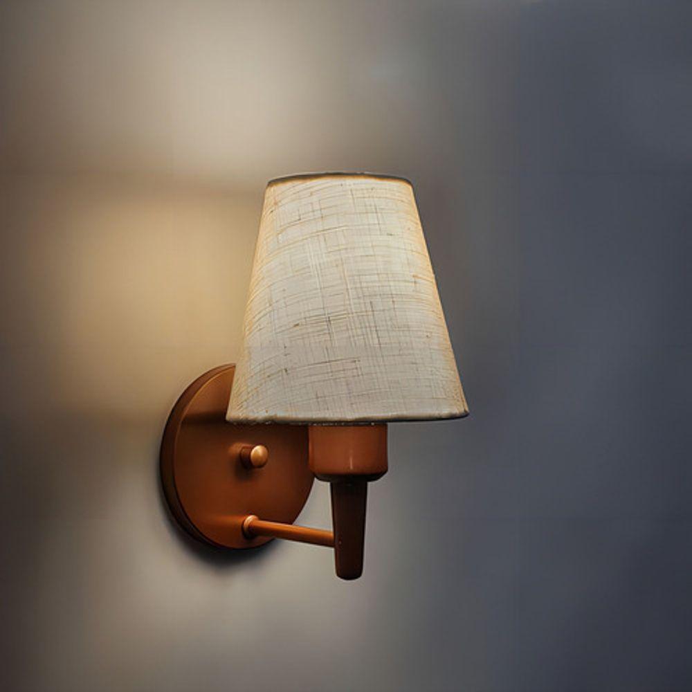 Arandela Cone Md-2004 Base Cobre Cúpula Em Tecido 14-14x07cm Rustico Bege - Bivolt
