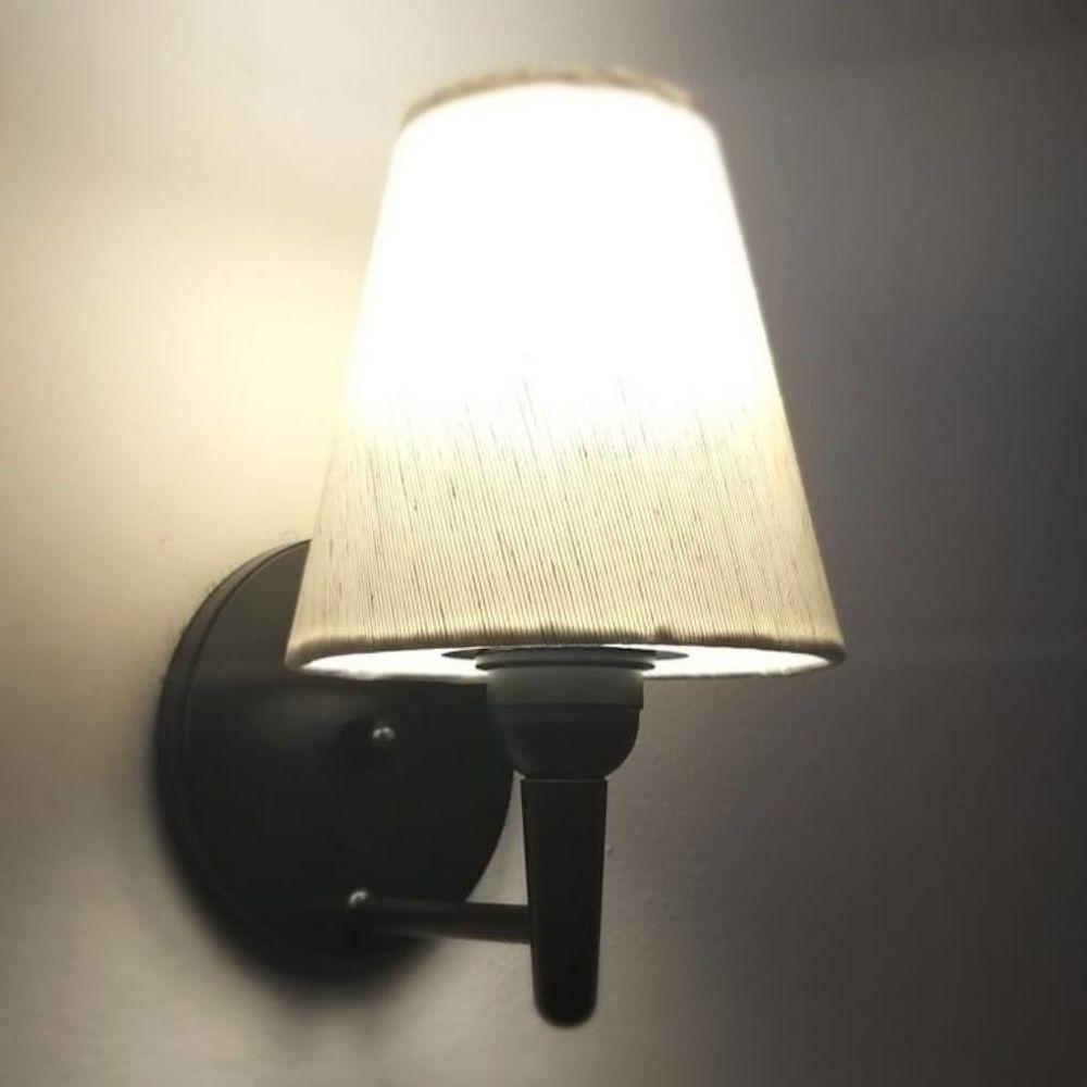 Arandela Cone Md-2004 Base Preto Cúpula Em Tecido 14-14x07cm Linho Bege - Bivolt