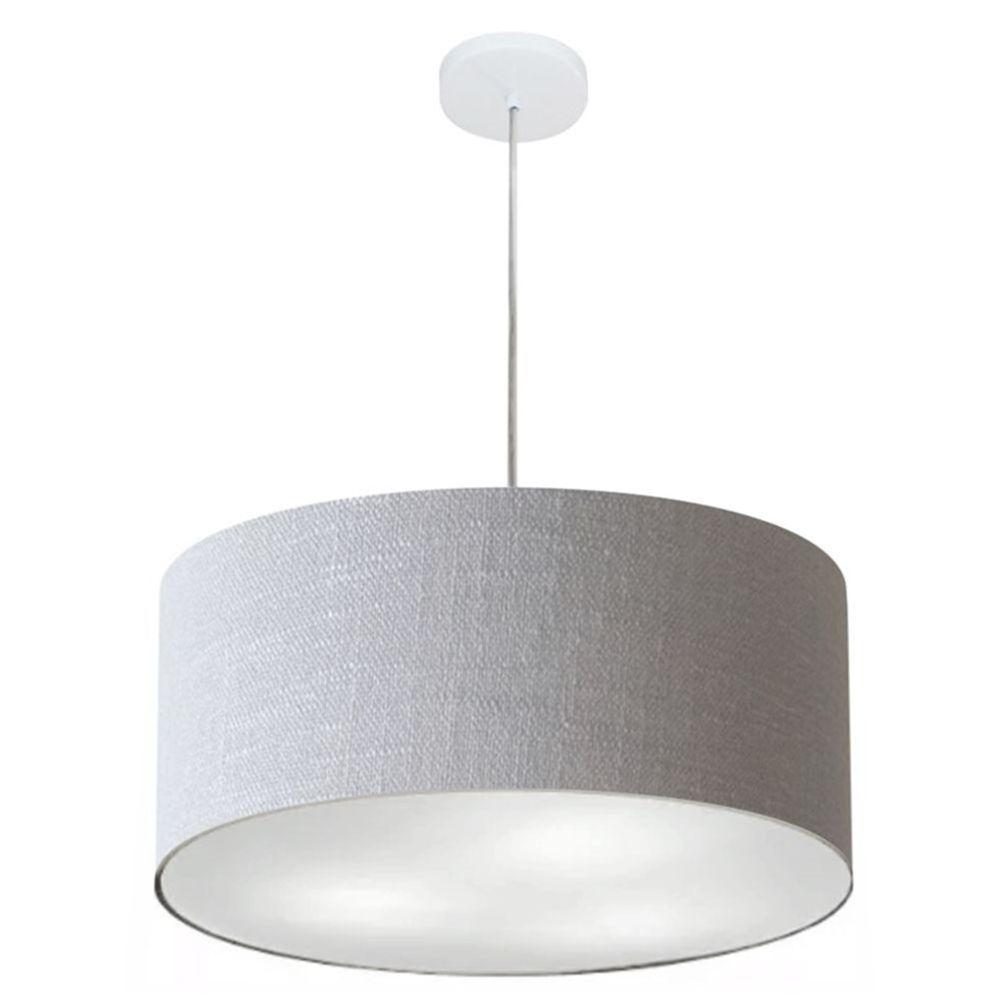 Kit Plafon Md-3014 Pendente Md-4049 Cúpula Em Tecido 50cm Rústico Cinza - Bivolt