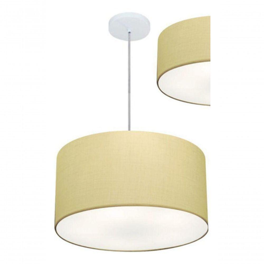 Kit Plafon Cilíndrico Md-3005 E Pendente Md-4019 Cúpula Em Tecido 40cm Algodão Crú - Bivolt