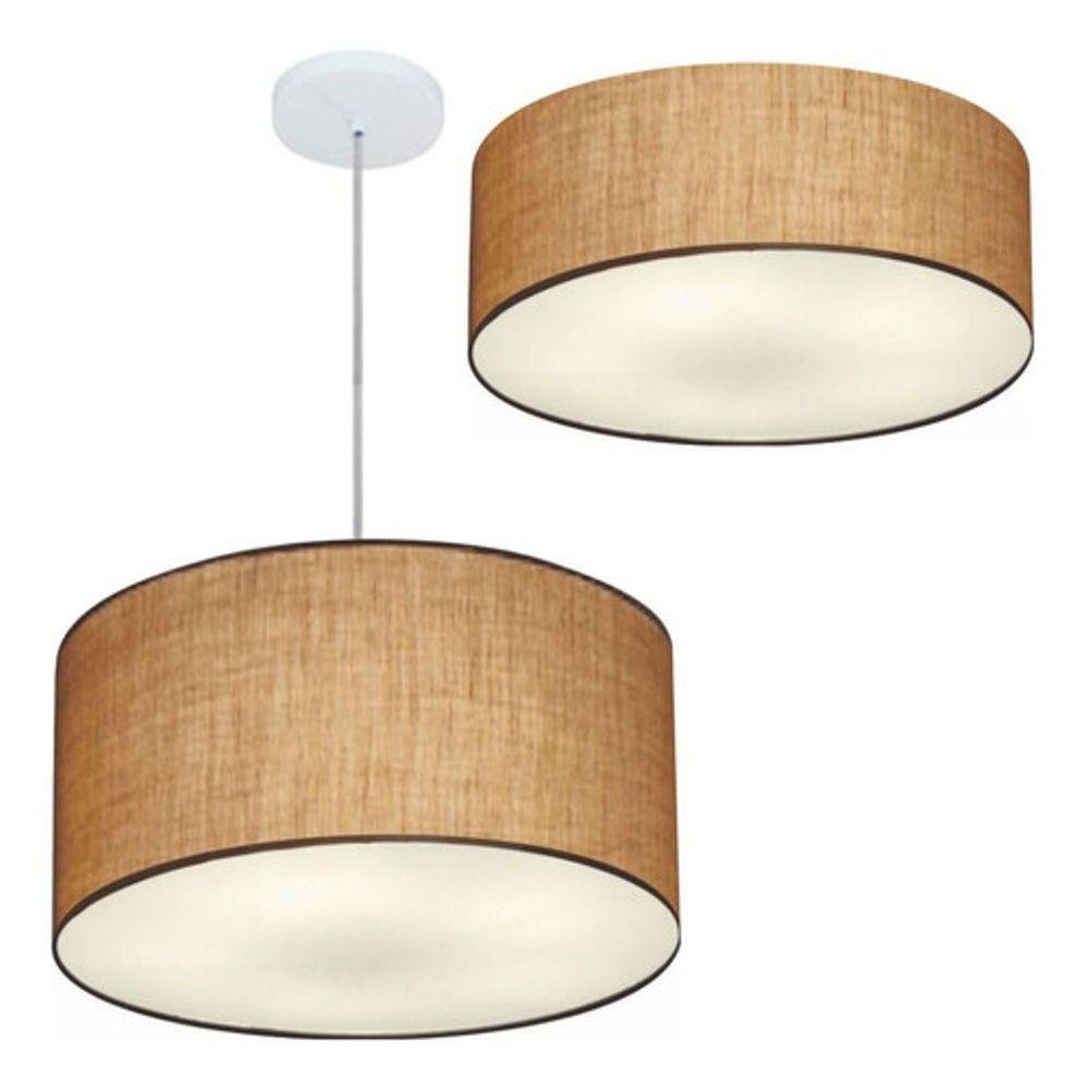 Kit Plafon Md-3014 Pendente Md-4049 Cúpula Em Tecido 50cm Palha - Bivolt