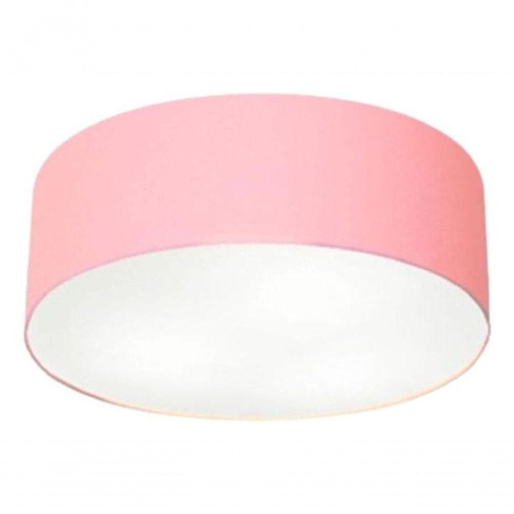 Plafon Cilíndrico Md-3005 Cúpula Em Tecido 40x12cm Rosa Bebê - Bivolt