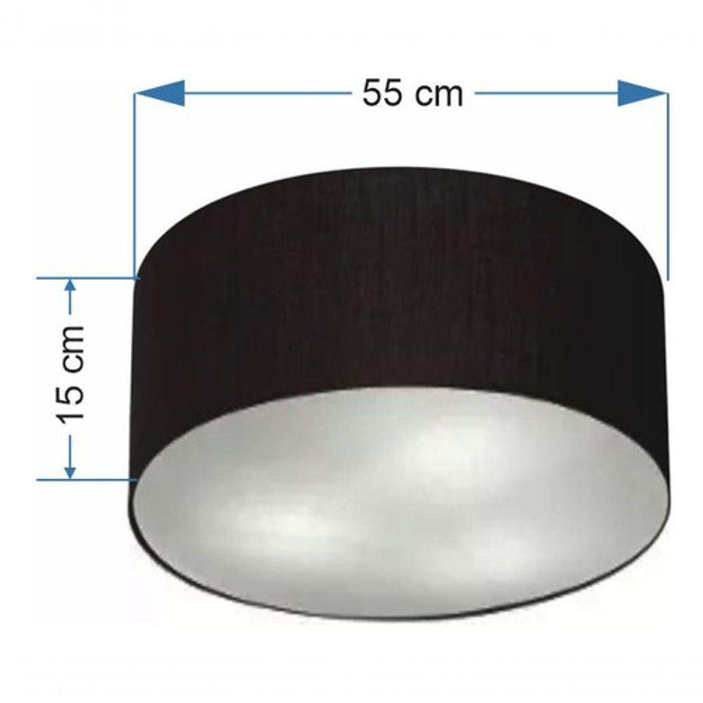 Plafon Cilíndrico Md-3057 Cúpula Em Tecido 55x15cm Preto - Bivolt