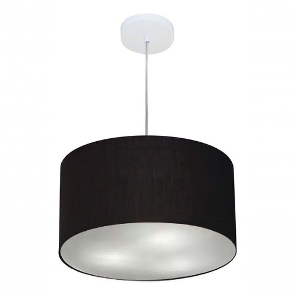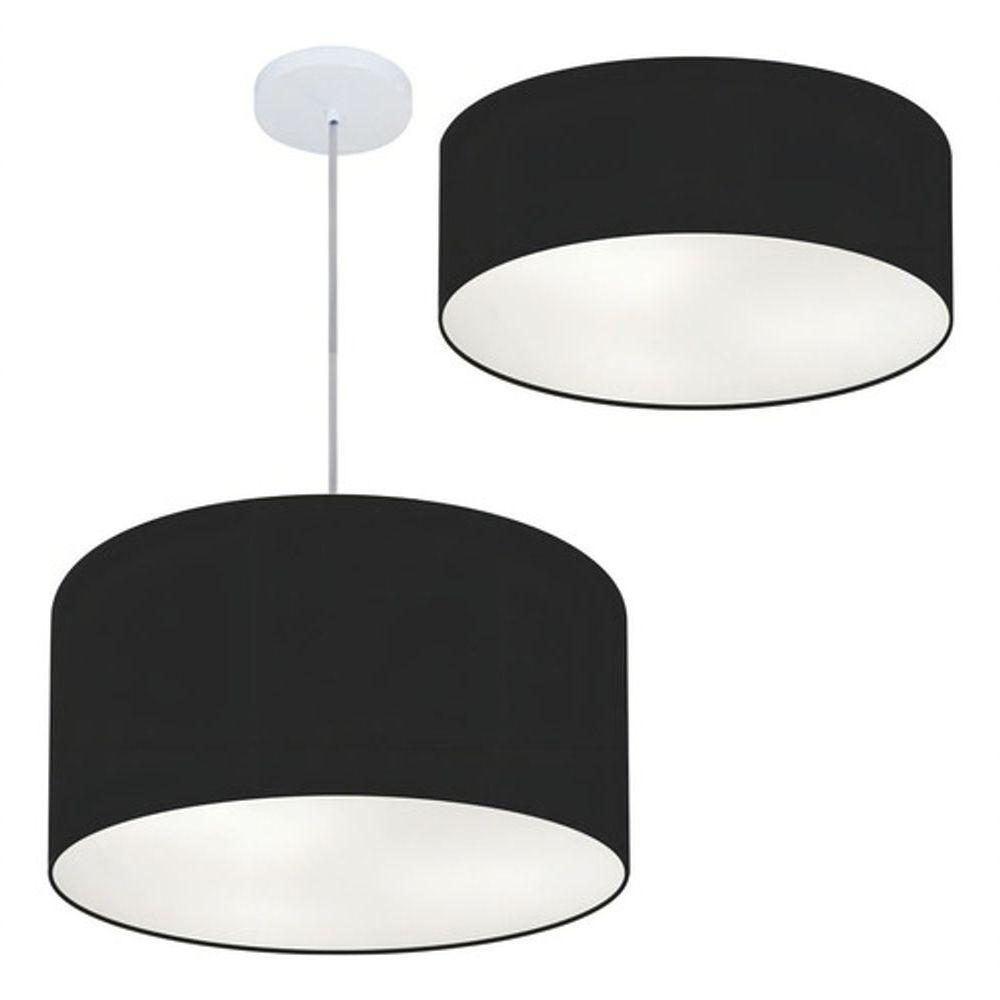 Kit Plafon Cilíndrico Md-3005 E Pendente Md-4019 Cúpula Em Tecido 40cm Preto - Bivolt
