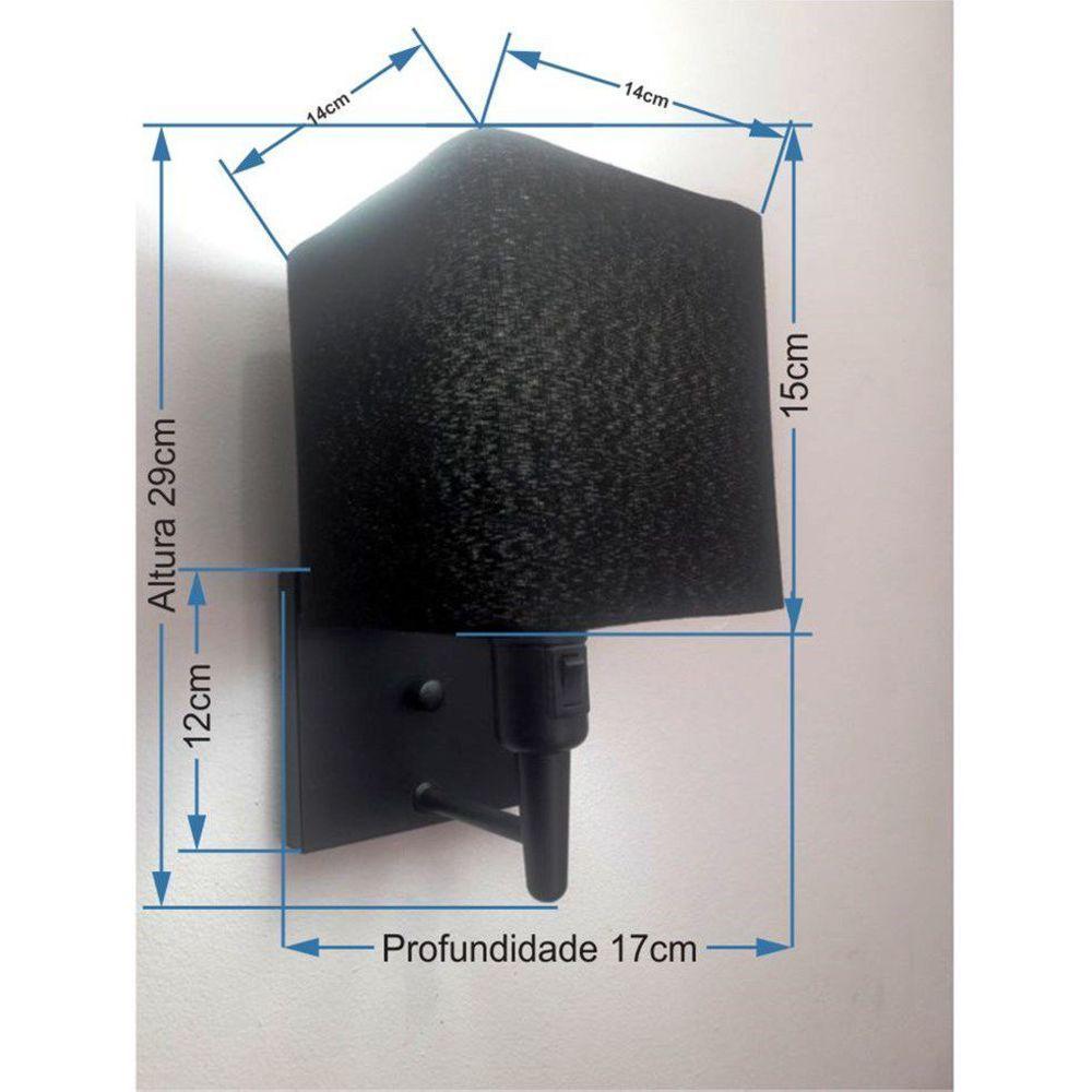 Kit-2 Arandela Quadrada Md-2019 Preto C- Inter Liga E Desl Cúpula Em Tecido Preto - Bivolt