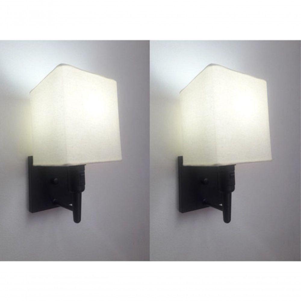 Kit-2 Arandela Quadrada Md-2019 Preto C- Inter Liga E Desl Cúpula Em Tecido Algodão Crú - Bivolt