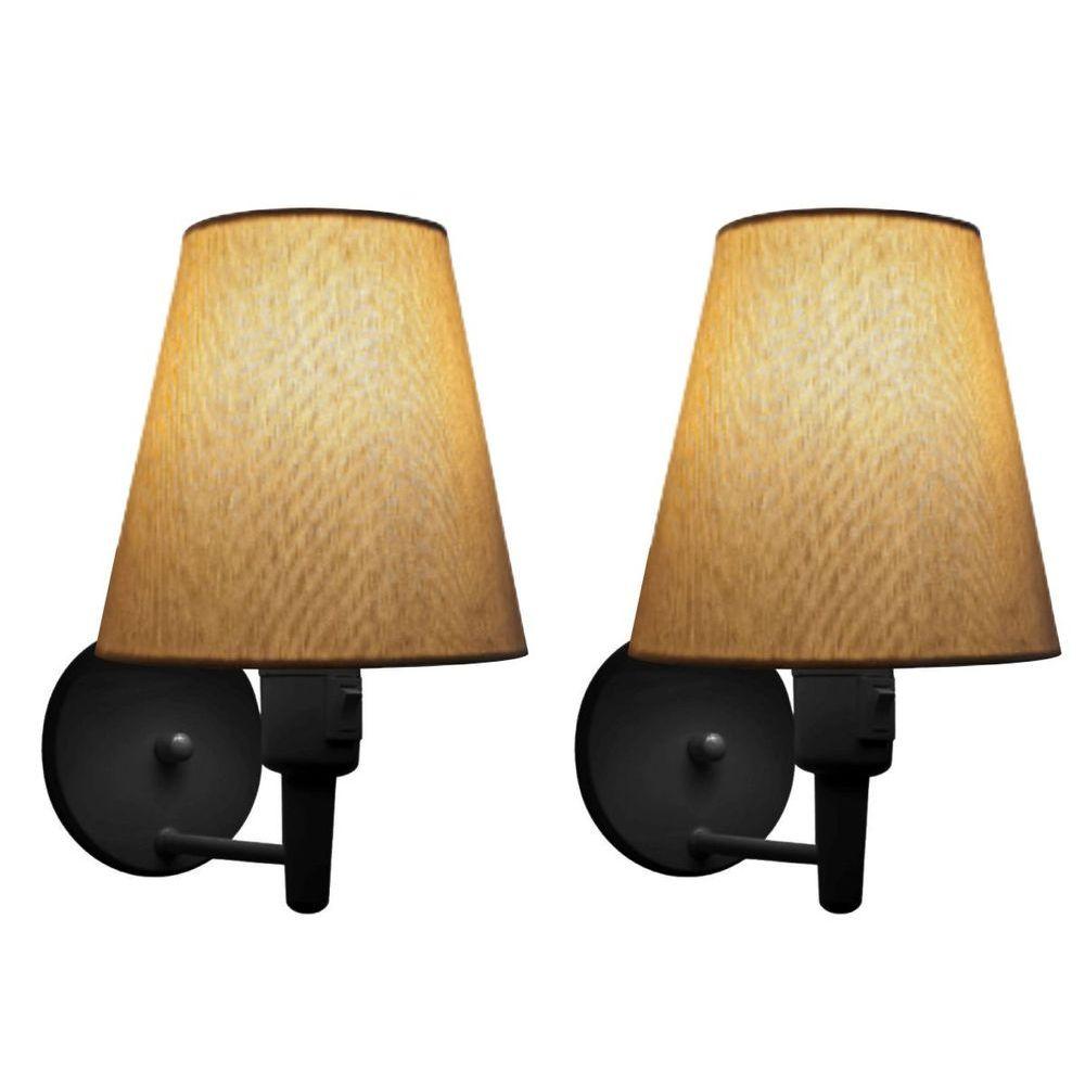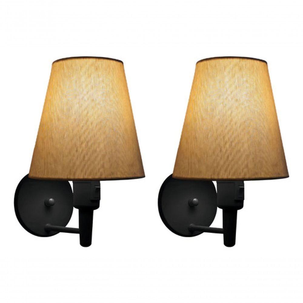 Kit-2 Arandela Cone Md-2013 Preto C- Inter Liga E Desl Cúpula Em Tecido Palha - Bivolt