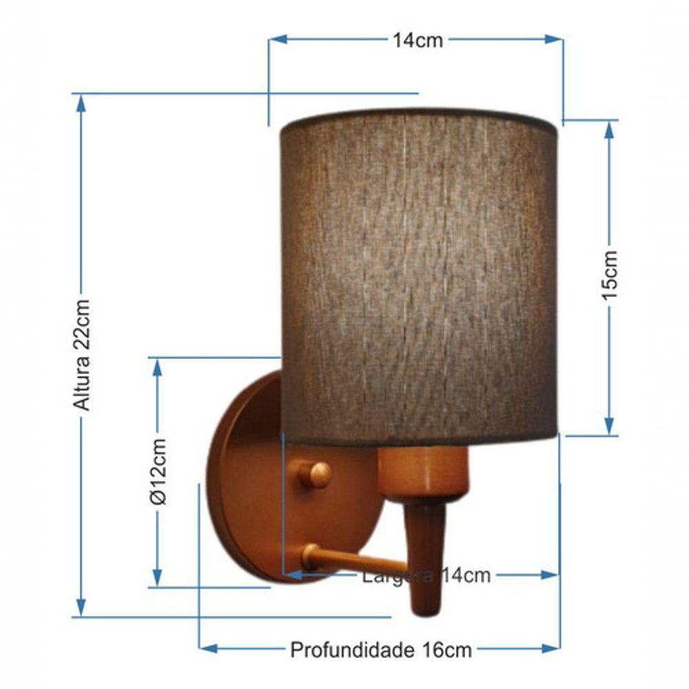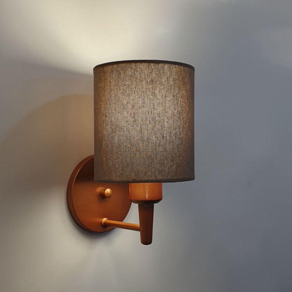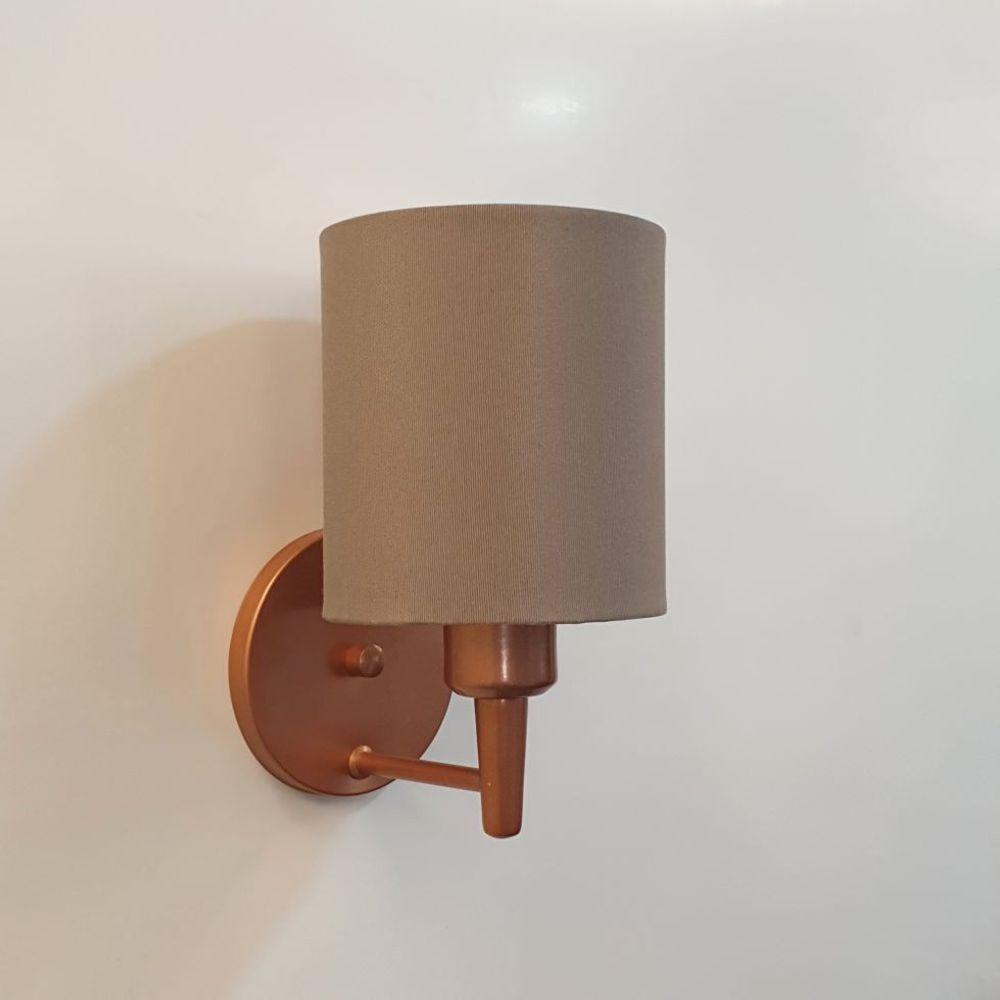 Arandela Cilíndrica Md-2009 Base Cobre Cúpula Em Tecido 14x15cm Caqui - Bivolt