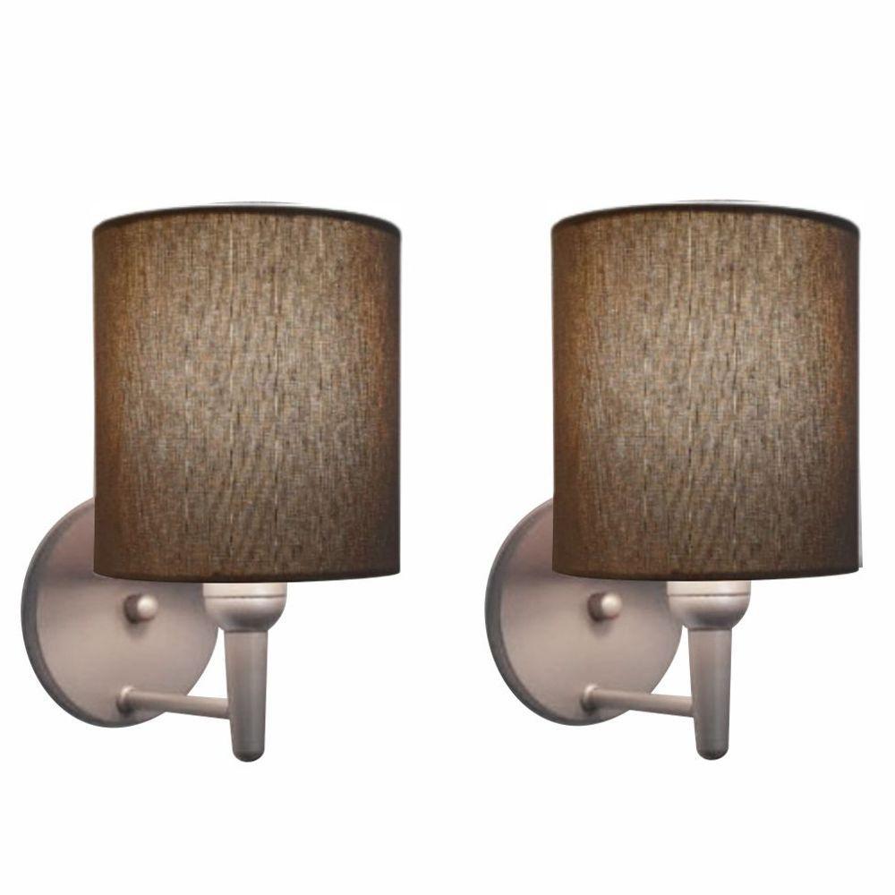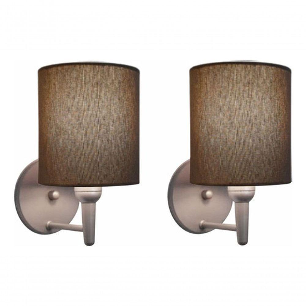Kit-2 Arandela Cilíndrica Md-2009 Base Cinza Cúpula Em Tecido 14x15cm Caqui - Bivolt