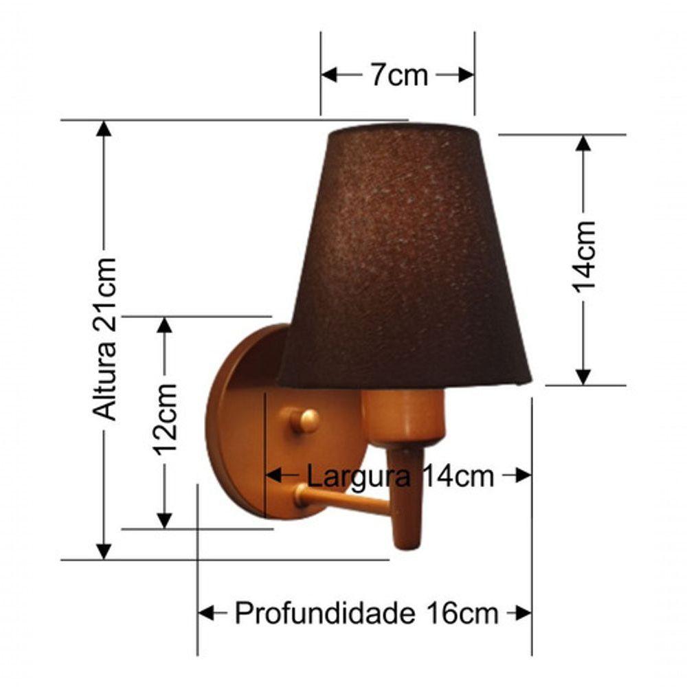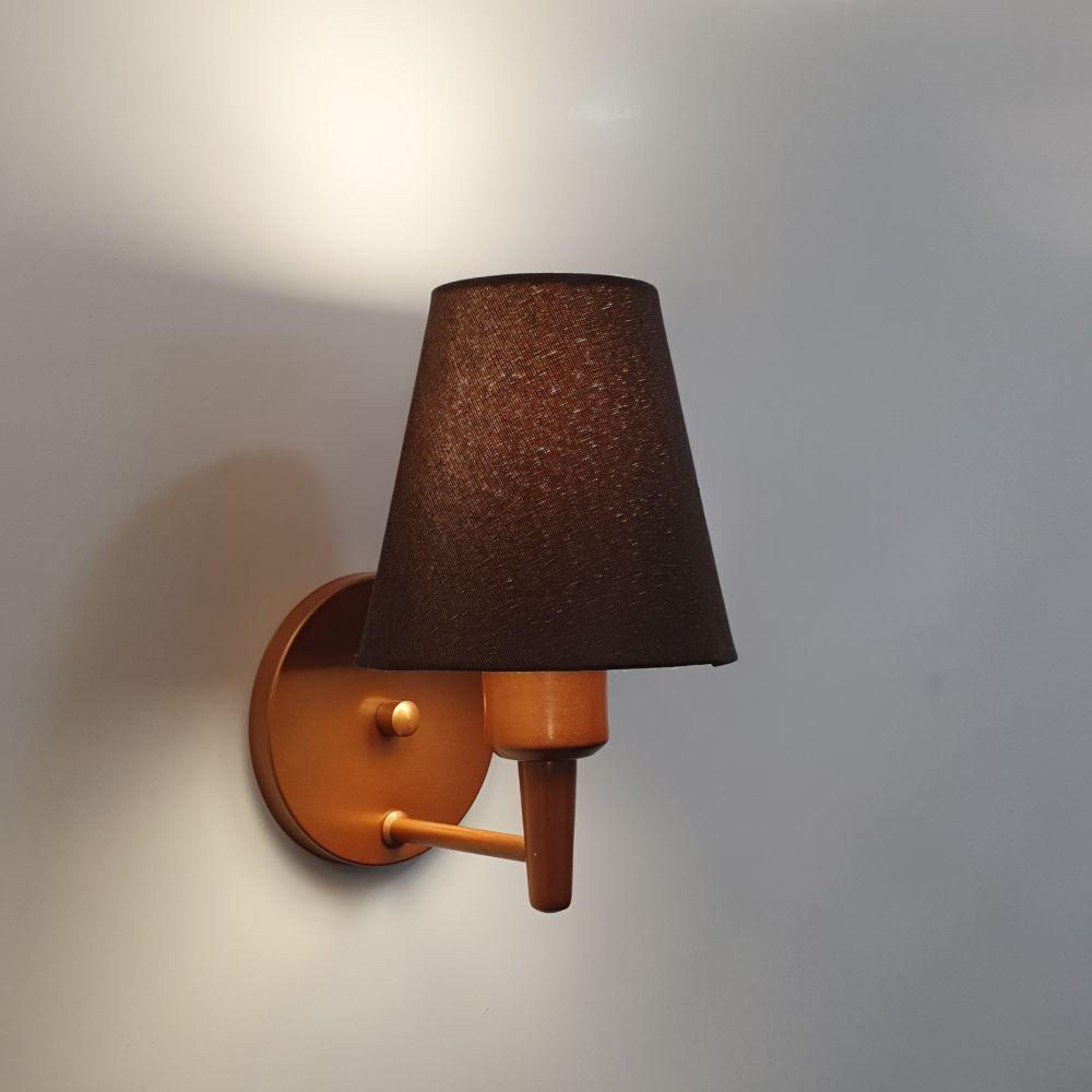 Arandela Cone Md-2004 Base Cobre Cúpula Em Tecido 14-14x07cm Café - Bivolt
