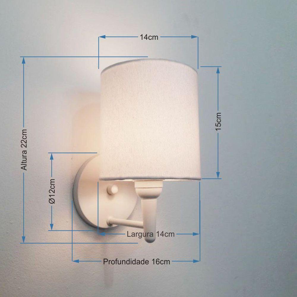 Arandela Cilindrica Md-2009 Base Branco Cúpula Em Tecido 14x15cm Branco - Bivolt