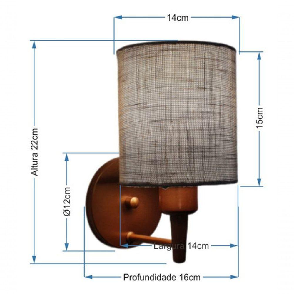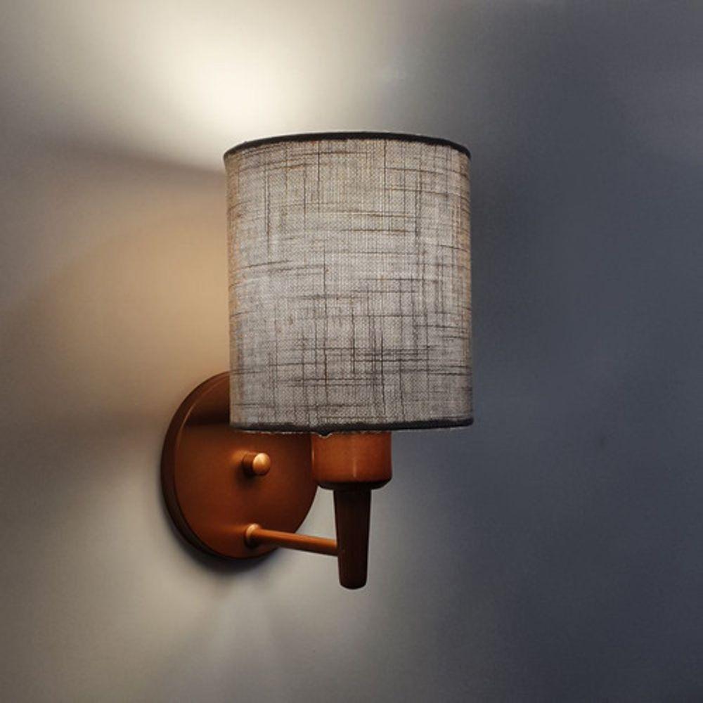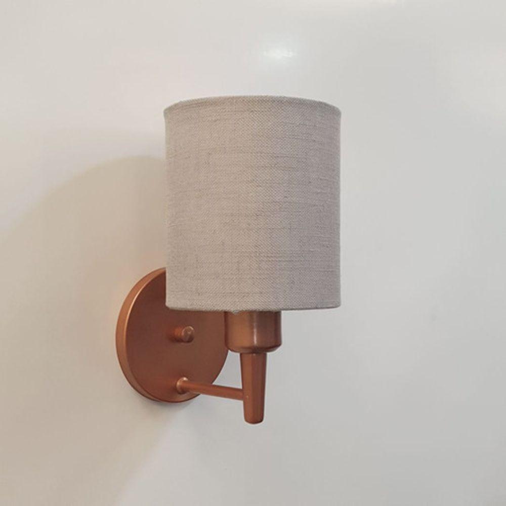Arandela Cilíndrica Md-2009 Base Cobre Cúpula Em Tecido 14x15cm Cinza - Bivolt