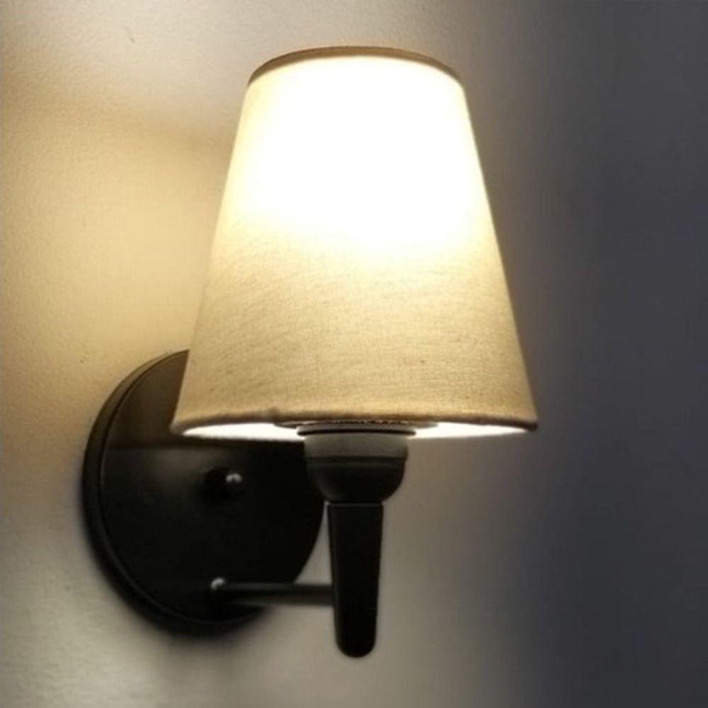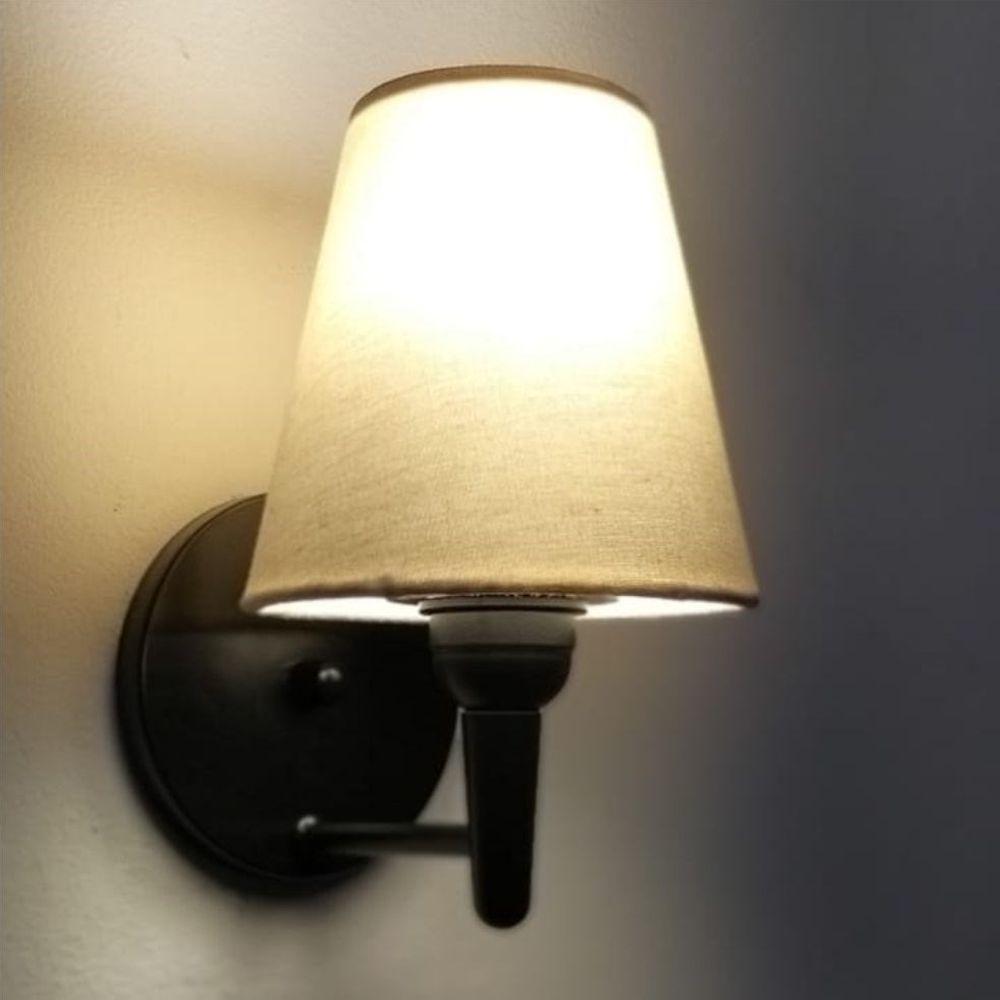 Arandela Cone Md-2004 Base Preto Cúpula Em Tecido 14-14x07cm Algodão Cru - Bivolt
